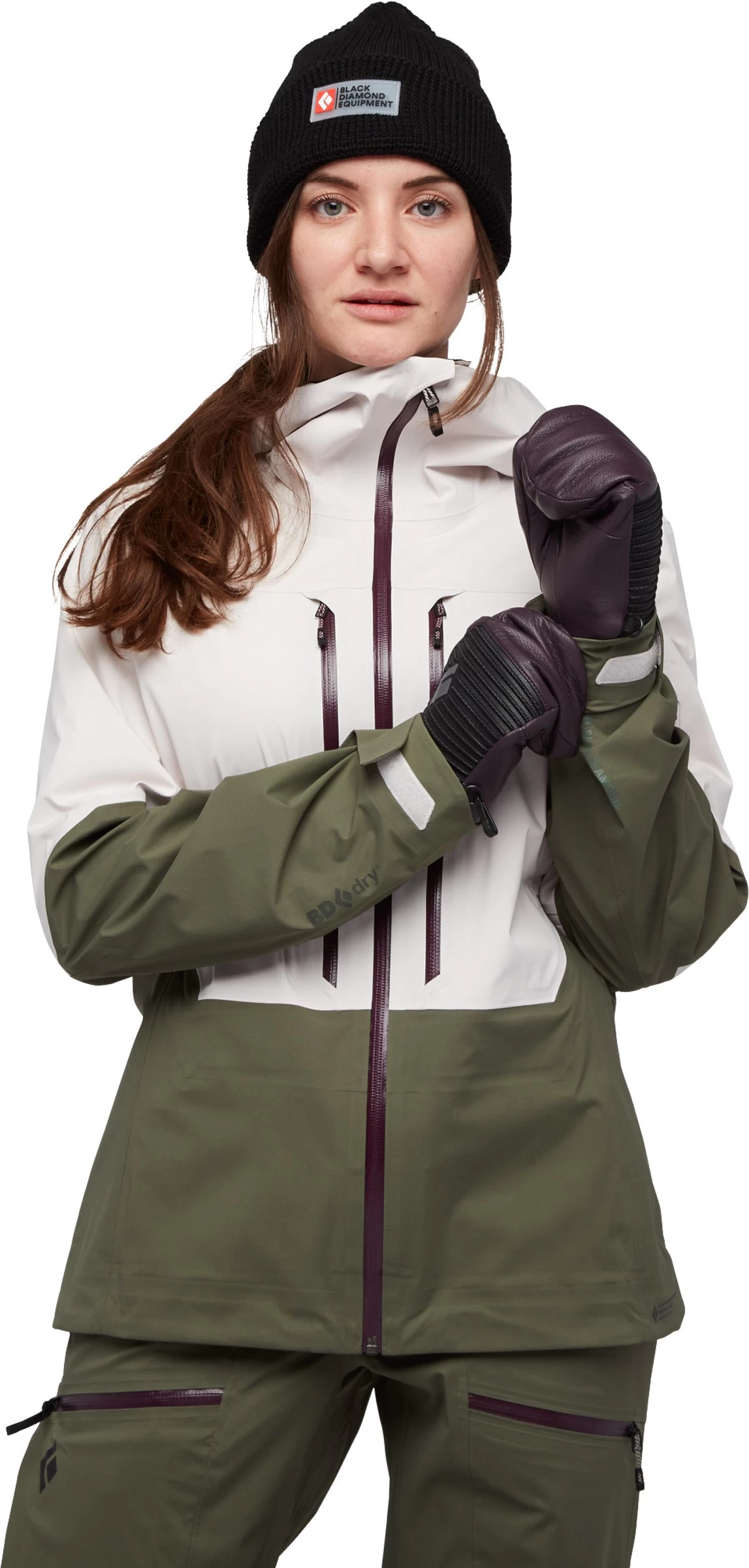 Trelagskonstruktionen, som kendetegner denne jakke, består af et tætvævet og robust ydermateriale af 93% nylon og 7% elastan, den gennemprøvede BD.dry™ -membran, som Black Diamond selv har udviklet, og så en foring af en blød og smidig jersey-tricot. Til sammenligning med andre trelagsjakker er denne konstruktion med den specielle inderside altså en bid blødere og lækrere at røre ved.