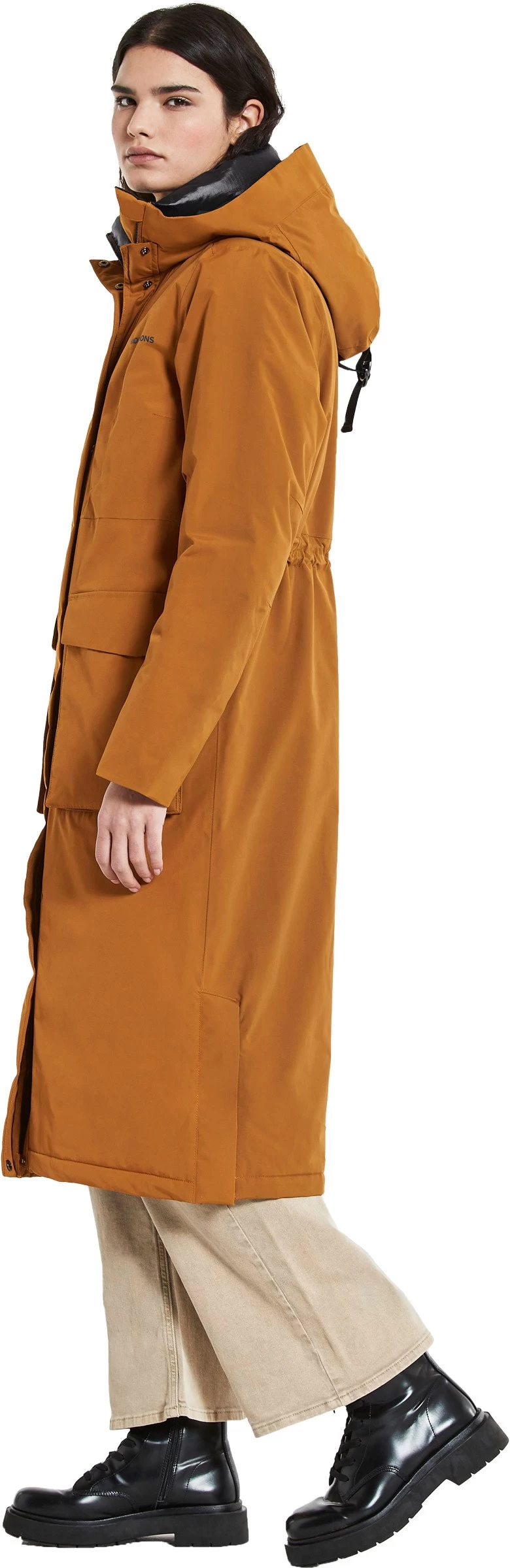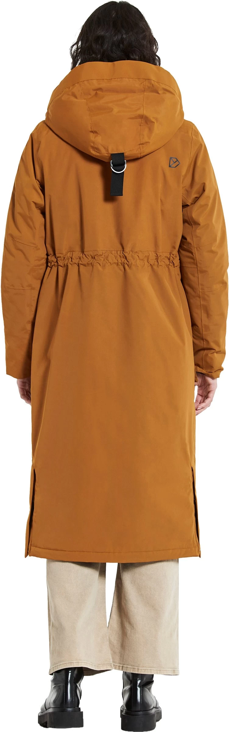 Den velsiddende og forede hætte er skåret med en dejlig stor volumen, så ansigtet er godt beskyttet mod den kolde vind og sludbygerne. Hætten er med et stilfuldt spænde på bagsiden justerbar i volumen, så den rette pasform opnås, og så kan Didriksons Leya Parka Long Women strammes ekstra sammen i livet, såden kolde vind ikke finder op under frakken. Et lækkert vindfang i ærmeafslutningerne i blødt og komfortabelt stretch-fleece holder effektivt den kolde efterårsvind og vinterkulden ude.