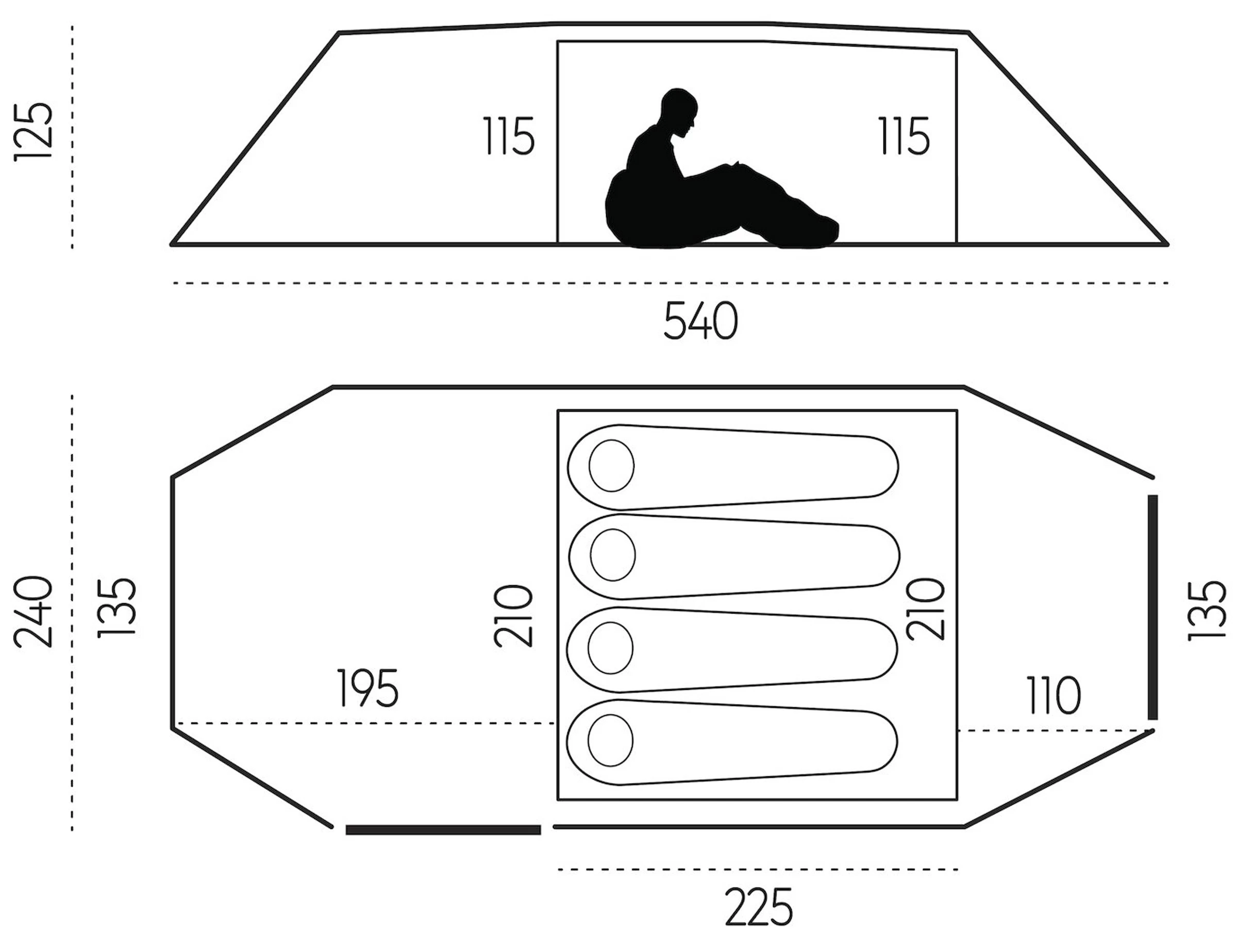 Den store sideåbning, som kan rulles mere eller mindre til siden og fikseres, giver gennem den gedigne YKK® -lynlås med automatisk lås adgang til den ekstra store apsis, hvori støvler, rygsække og andet kan opbevares i tørvejr, ligesom man – med stor forsigtighed – kan lave mad i teltåbningen. Og har man en ekstra overliggerdag pga. dårligt vejr kan inderteltet lynhurtigt løsnes og trækkes tilbage, så man har godt med plads under oversejlet. Alle spidsbelastningspunkterne omkring pløkfæsterne er naturligvis ekstra forstærket. De afstivede og regulerbare ventilskakter i begge ender justerer luftgennemstrømningen og det bagvedliggende myggenet ved såvel indgangsdør til inderteltet som ved ventilskakterne holder alt krybet ude.