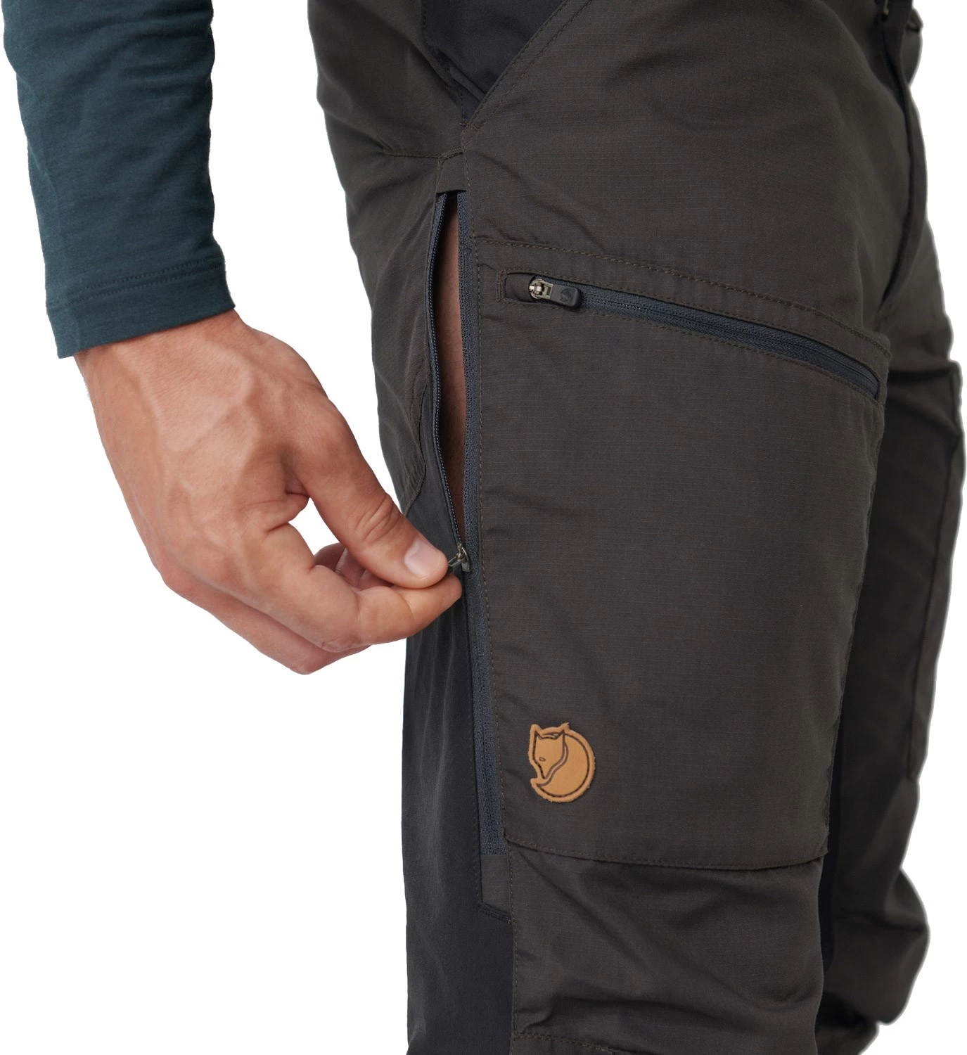 Abisko Lite Trekking Trousers Regular er forsynet med smarte ventilationsåbninger på hver side, så du kan ventilere efter behov, løkker til livremmen og desuden udstyret med en stiklomme på hver side og en lynlåslukket udstyrslomme på hvert lår til kort, kompas og mobiltelefon.