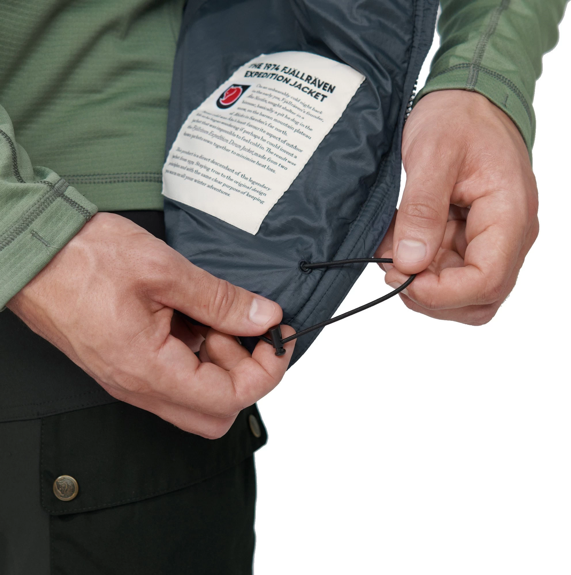 Denne meget lette og lune Expedition X-Lätt Vest er Fjällrävens bud på en alsidig fibervest, som både kan bruges alene som lun vest om sensommeren og hen på efteråret eller som det isolerende mellemlag under en vandtæt skaljakke under de mere krævende forhold. Sammenpakket i egen inderlomme hverken fylder eller vejer den meget at have med i rygsækken, men vesten giver en fortrinlig og umiddelbar varme, når det behøves.