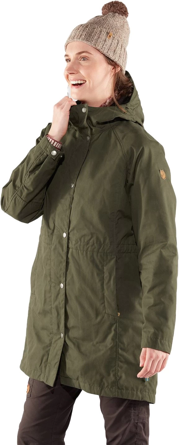 Det er med stor glæde, at vi til efteråret ’21 kan præsentere en helt vandtæt og åndbar udgave af klassikeren fra 1972! Denne lange Fjällräven Karla Hydratic Jacket Women (som altså er en frakke snarere end en jakke) er nemlig en ikke-foret udgave af den uhyre populære damefrakke, Greenland Winter Parka, som har holdt tusinder af kvinder varme gennem de sidste 40 år.