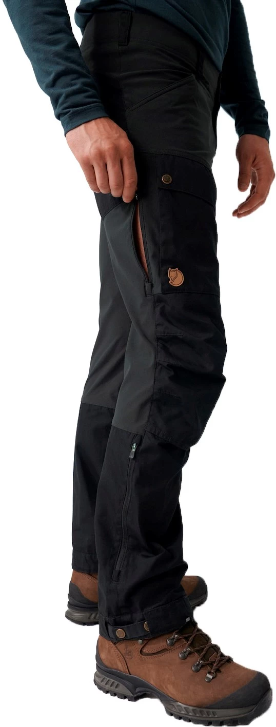 Til foråret ’19 har Fjällräven opdateret hele deres program af de prisvindene Keb-bukser. Pasformen er blevet optimeret, slidstyrken øget og buksebenene er nu nederst udstyret med løkker til at kunne fiksere fx en rem under foden, så buksebenet bliver holdt nede og på plads omkring anklen. Desuden kan justeringsremmen omkring anklen helt afmonteres, hvis det ønskes.
