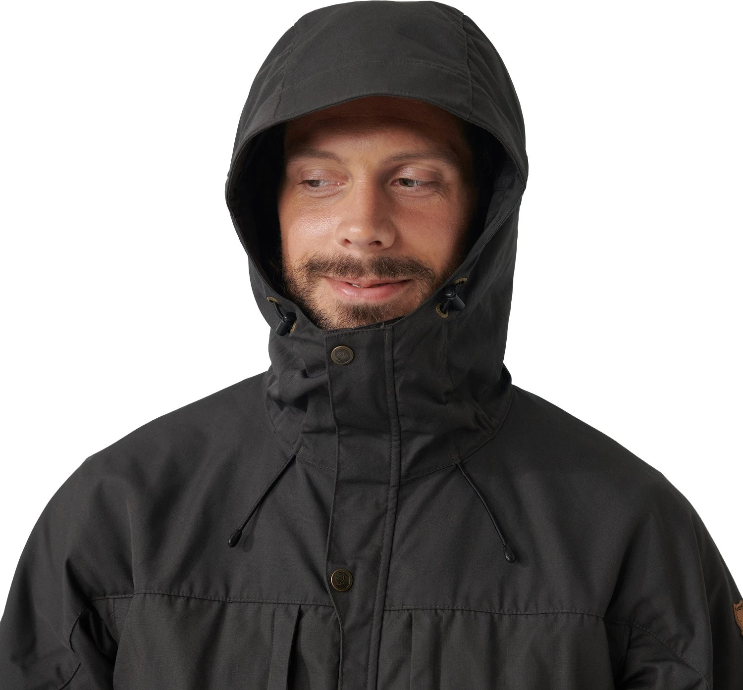 Skogsö Jacket er en meget gennemført jakke, fremstillet primært af Fjällrävens lette G-1000® Lite med forstærkninger over skuldre og hætte af det efterhånden legendariske G-1000®. Begge materialer, som sikrer en ekstrem høj grad af vindtæthed, rimelig vandresistens og en superb åndbarhed, kan selvfølgelig efterimprægneres med Greenland Wax. Og denne materialekombination af let og lidt kraftigere G-1000® optimerer komforten og bevægelsesfriheden i jakken markant.
