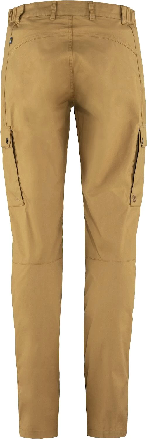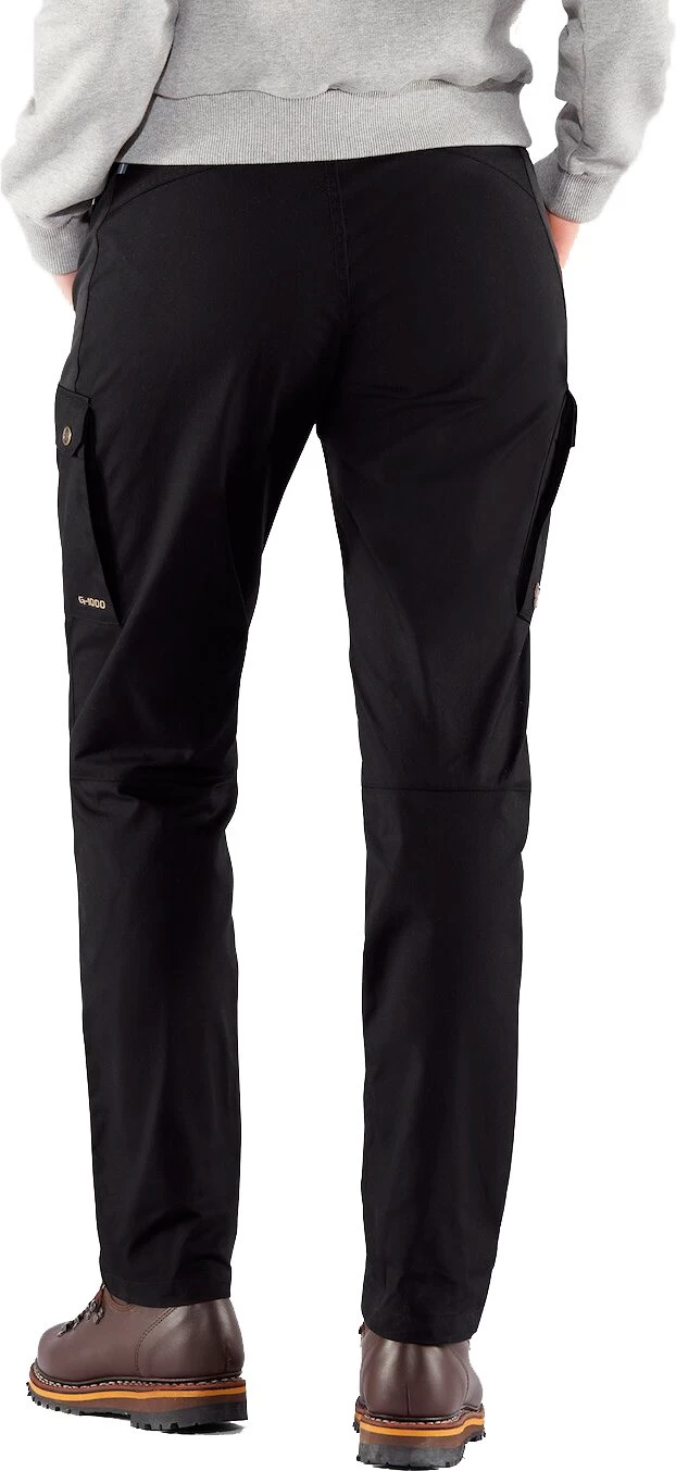 Fjällräven Stina Trousers Regular Women er simpelt udstyret med blot to lynlåslukkede stiklommer og en praktisk og knaplukket lomme på hvert lår til de medbragte småting.