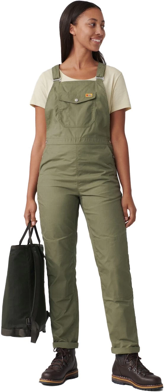 Fjällräven er berømt for en tidløs og smagfuld retro-stil, så det er ikke overraskende, at de nu kan præsentere denne Vardag Dungaree Trousers Women, som er en helt klassisk overall til det aktive liv, både til hverdagen i storbyen og til oplevelserne tæt på naturen.