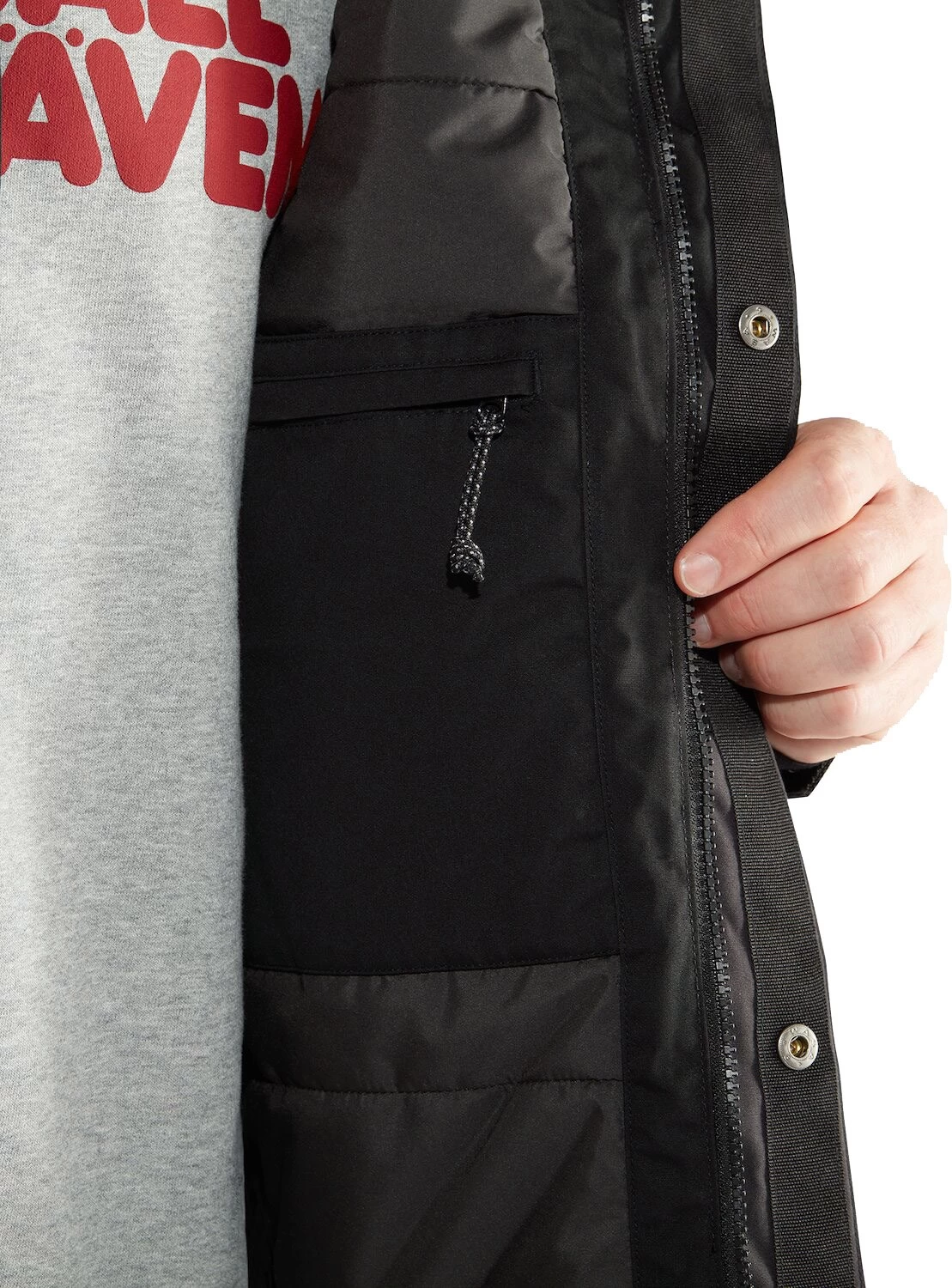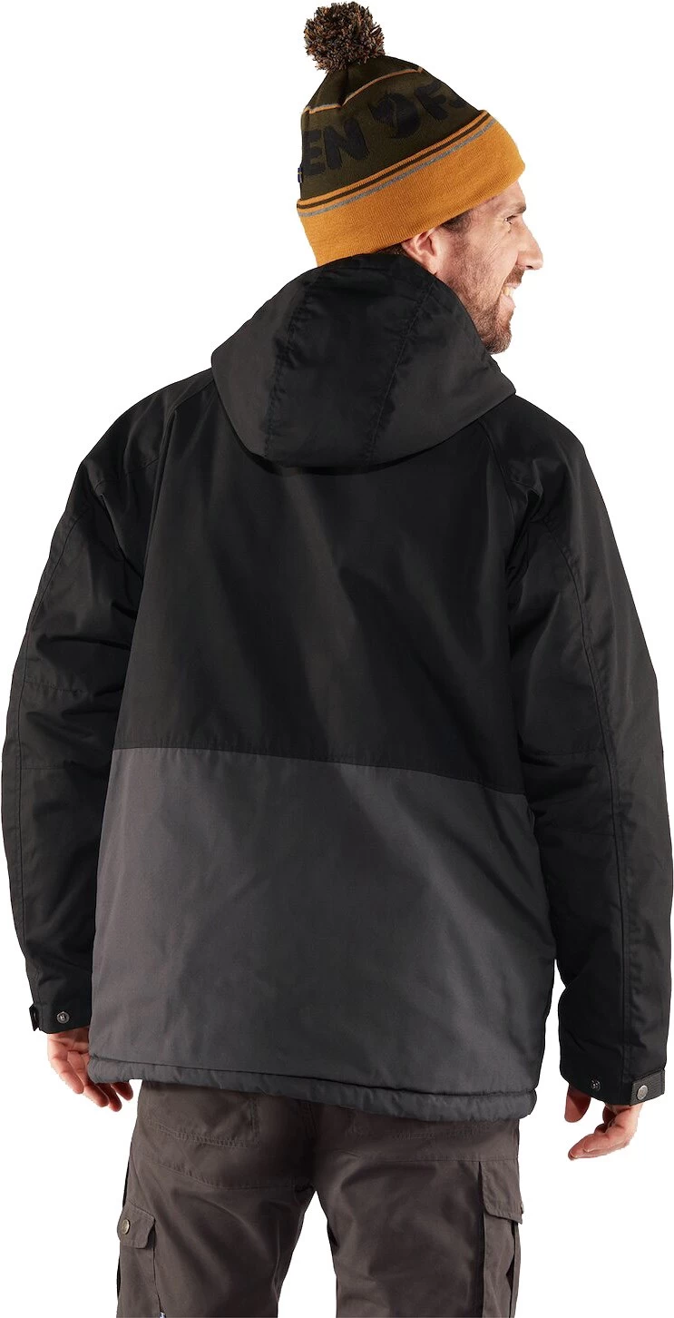 På fronten er Fjällräven Vardag Lite Padded Jacket nederst udstyret med to rummelige og knaplukkede håndlommer, og på brystet er der fundet plads til et par lynlåslukkede lommer. Indvendigt findes en lynlåslukket lomme til pengepungen eller andre værdier. Den tovejs frontlynlås er gemt væk bag en bred, knaplukket stormflap, som minimerer risikoen for kuldegennemtrængning.