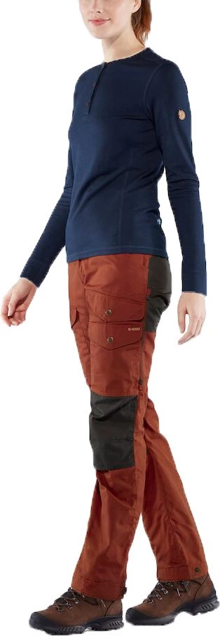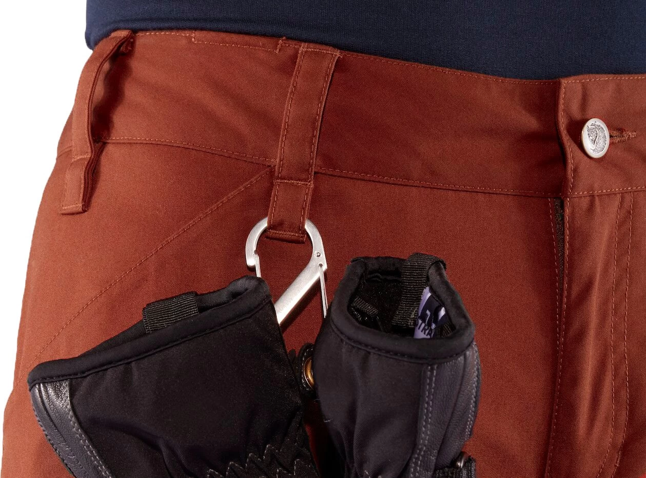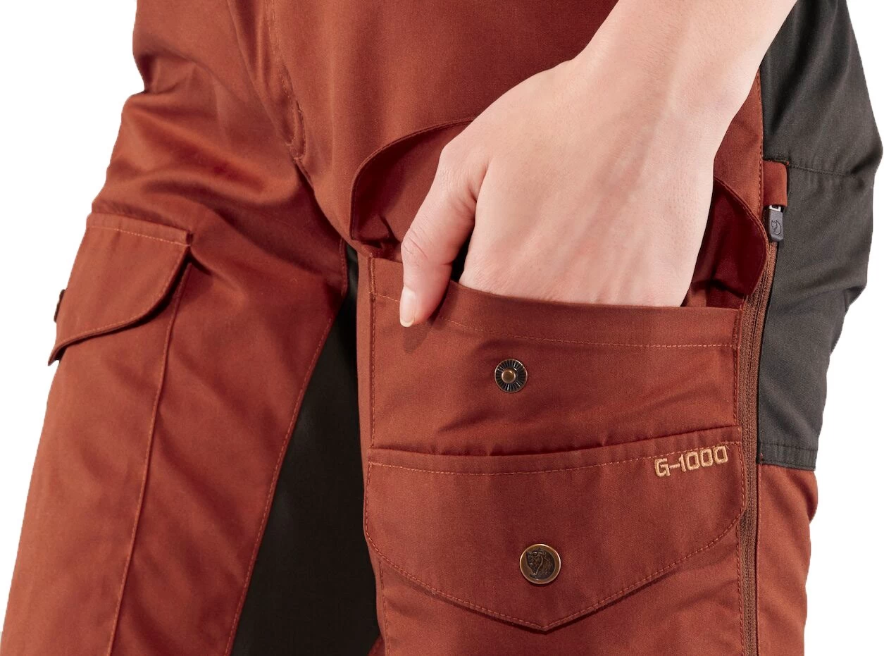 Lommebesætningen minder om de klassiske Vidda Pro Trousers, og på samme måde er der mulighed for – gennem en slids under hvert af de formskårede knæ – at udstyre buksen med knæpuder (tilkøbes eller hjemmegjort, fx skåret af et skumunderlag), hvis der skulle være behov for dette.
