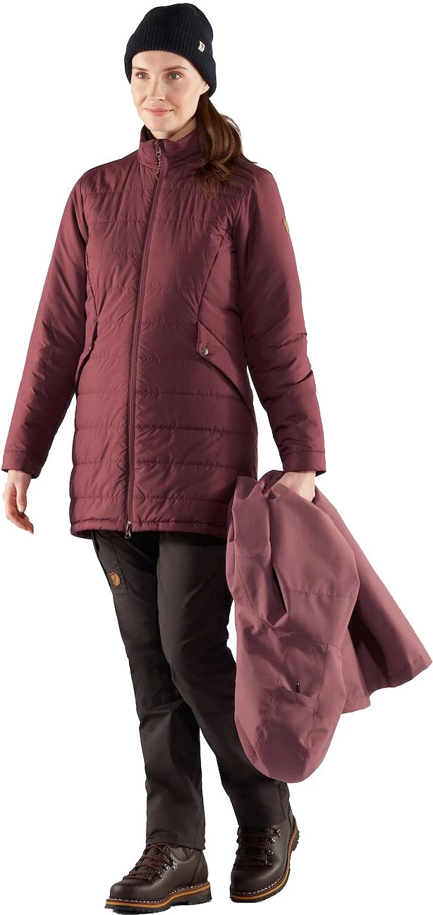 Den fiberforede inderfrakke er fantastisk at bruge alene tidligt på foråret og en bid hen på efteråret. Den er nemlig foret med en spundet G-Loft® Supreme, der er en særlig mikrofiber, som binder meget store mængder luft i forhold til fyldvægten, og som holder sit løft (og på varmen), hvis det skulle blive fugtigt. En kunstfiber, som bedre modstår trykpåvirkninger og fugt end dun og som ikke flytter sig i de forskellige kamre, når frakken bruges.