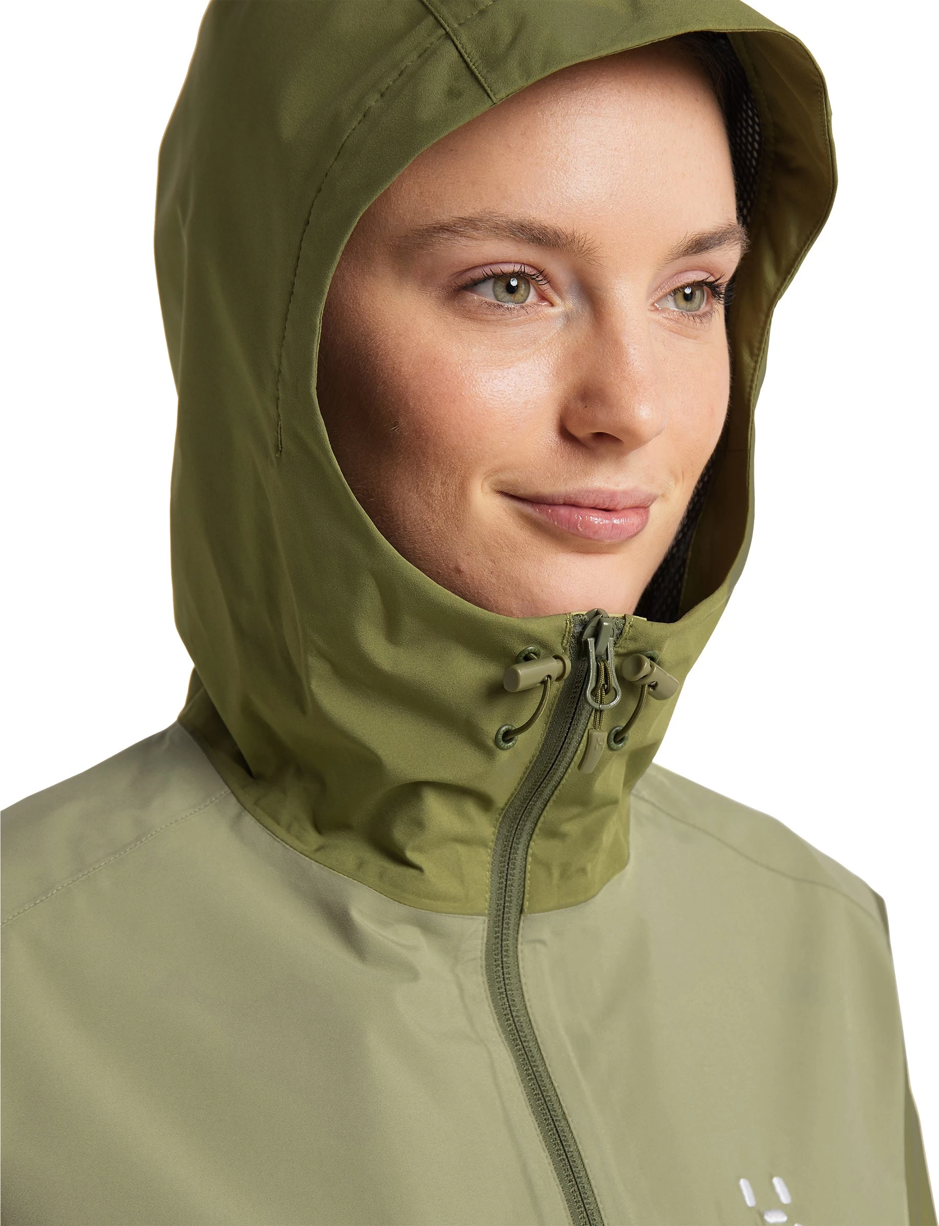 Haglöfs Buteo Jacket Women er en let, dejlig blød og alsidig regnjakke, der fylder ganske lidt i oppakningen. Den er meget velegnet til såvel hverdagsbrug som vandreturen på det omskiftelige sommerfjeld.