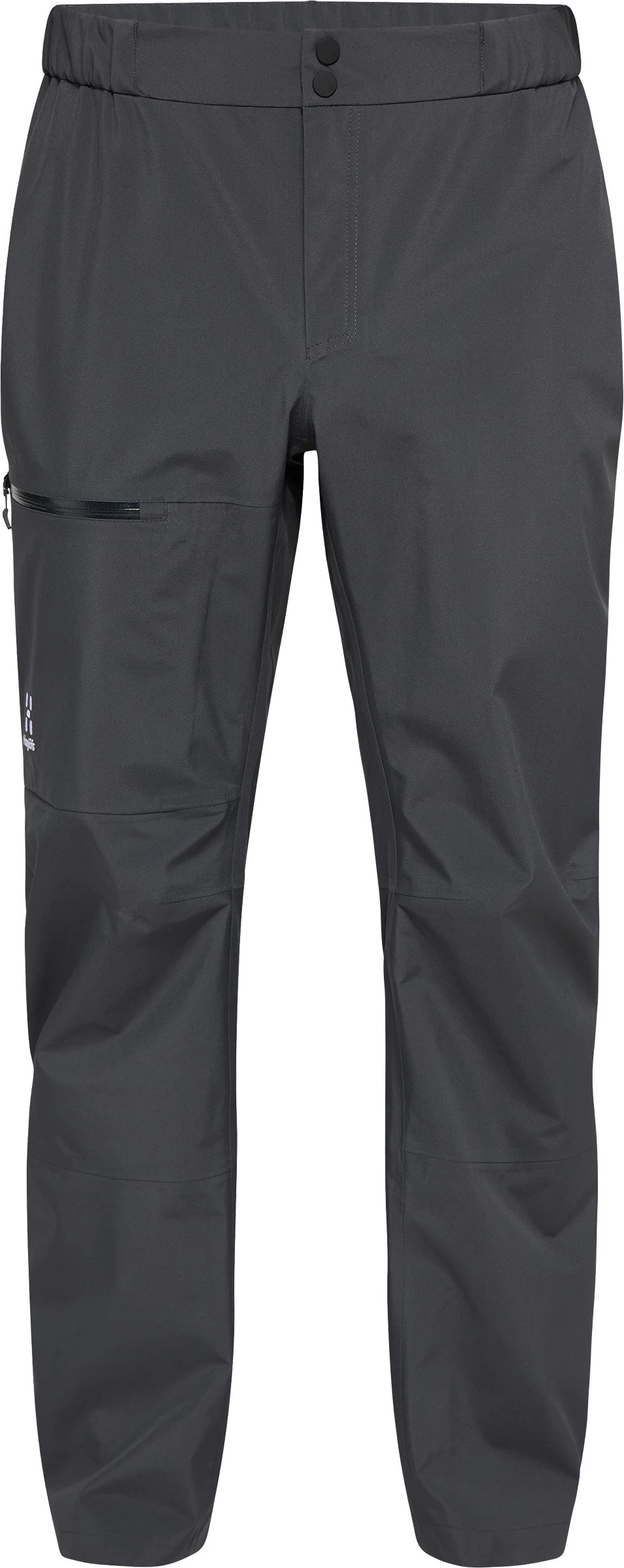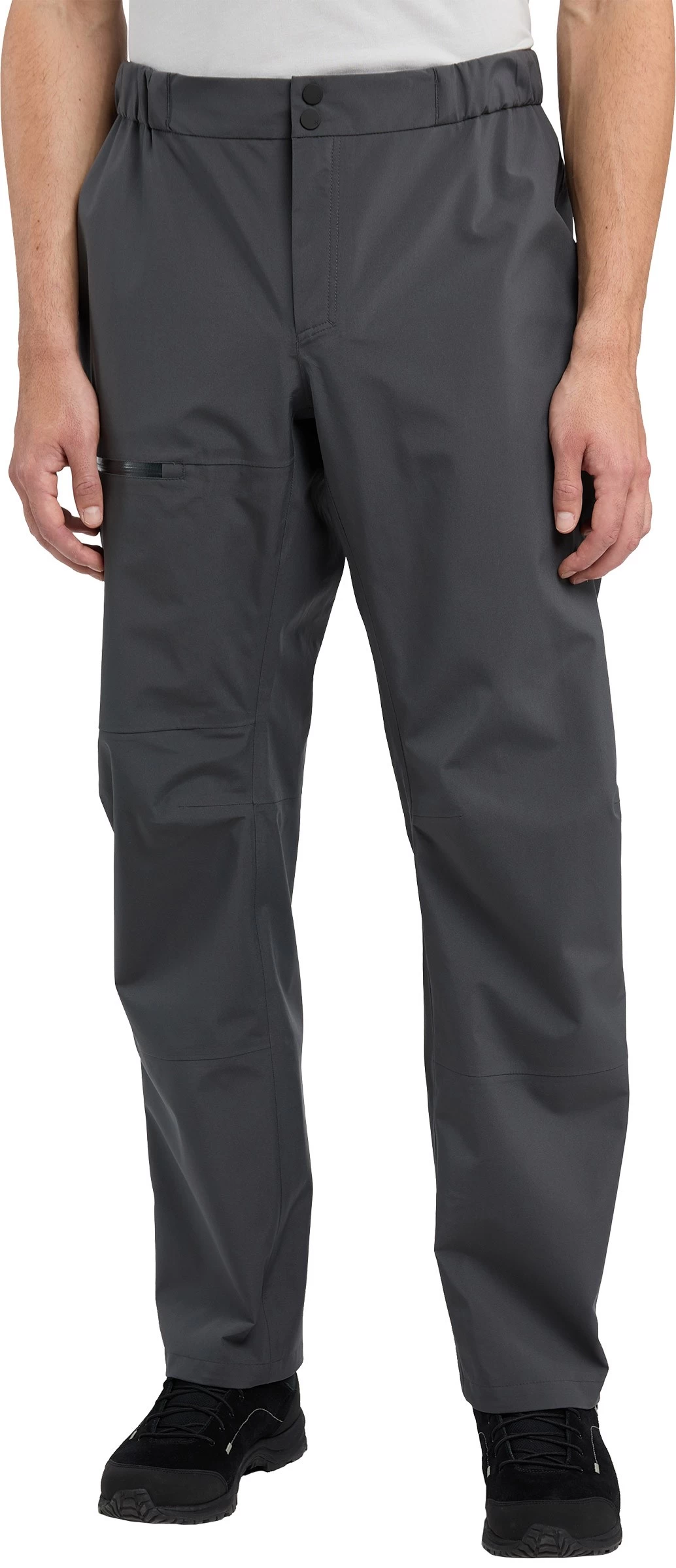 Haglöfs Front Proof Pant er forsynet med en knaplukket og elastisk linning med flad profil, som åbnes med dobbelt knaplukning og lynlås. Det elastiske panel højner både komforten og bevægelsesfriheden, og hvis det ønskes, kan et bælte skydes i de monterede bæltestropper. De formskårede knæ giver god bevægelsesfrihed, uanset om du cykler eller er på vandretur på fjeldet og den knælange lynlåsåbning i hver side gør det nemt og hurtigt at trække buksen ud over de store vandrestøvler.