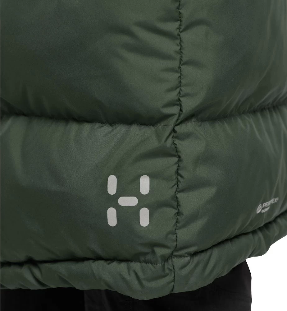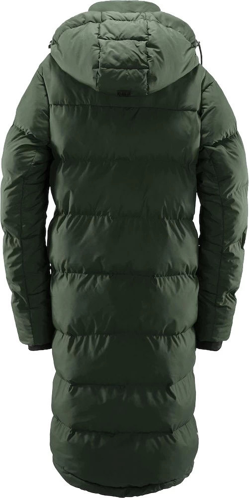 Selvom det ligner en stor og varm dunfrakke, så er denne lange Furudal Mimic Parka Women fra Haglöfs faktisk en stor og let fiberfrakke. Det vil sige, at man har dunfrakkens fordele i form af lav vægt og formidabel varmeregulering, men hvor dunfrakken kommer til kort, når dunfyldet bliver vådt og kollapser, vil en fiberfrakke som denne Furudal Mimic Parka Women bibeholde de isolerende egenskaber – i al slags vejr!