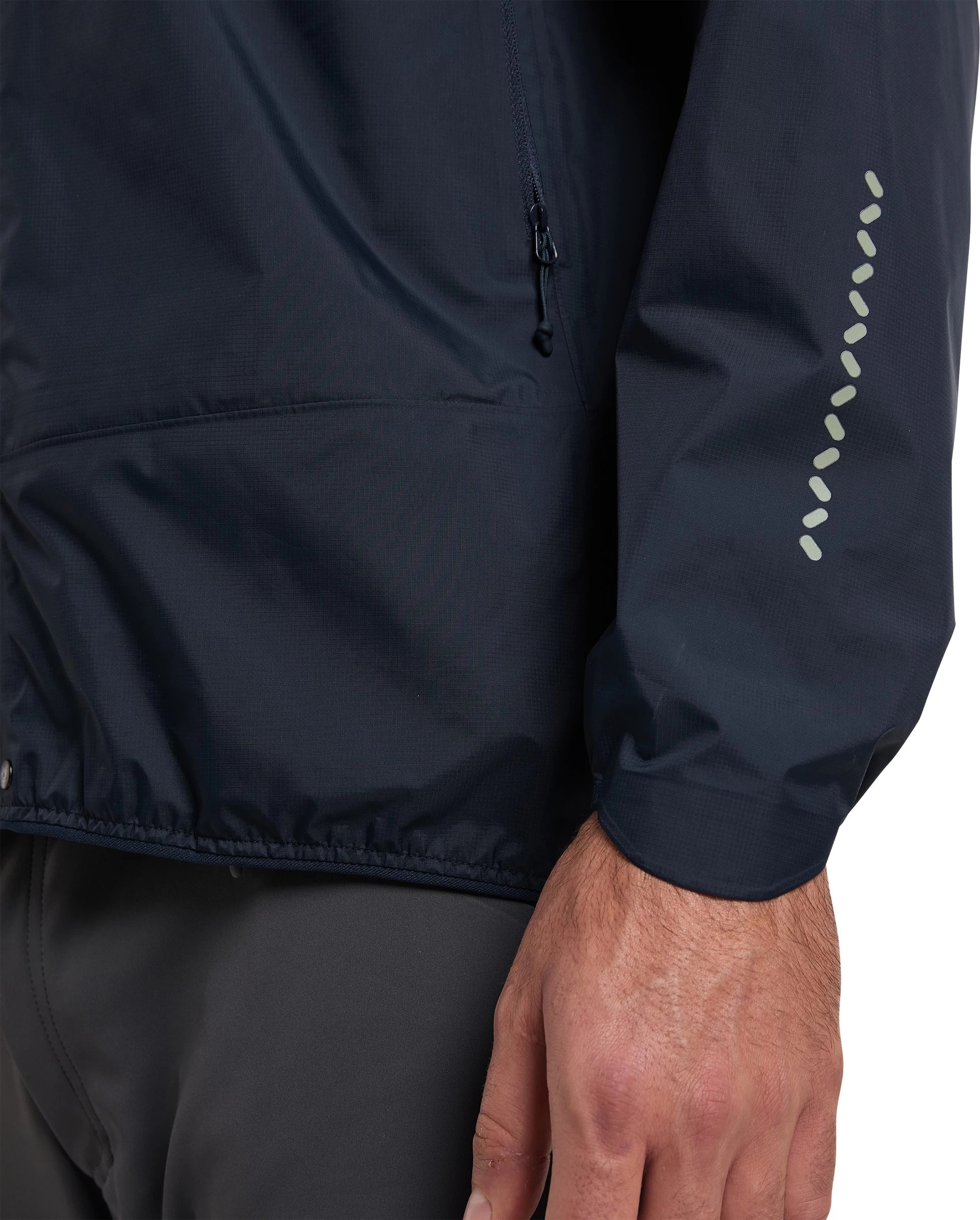For at forhindre, at jakken kravler op fx når du cykler, er rygstykket forlænget en god bid og den elastiske sammensnøringsmulighed nederst i hver side sikrer, at den kolde vind holdes ude og varmen inde.