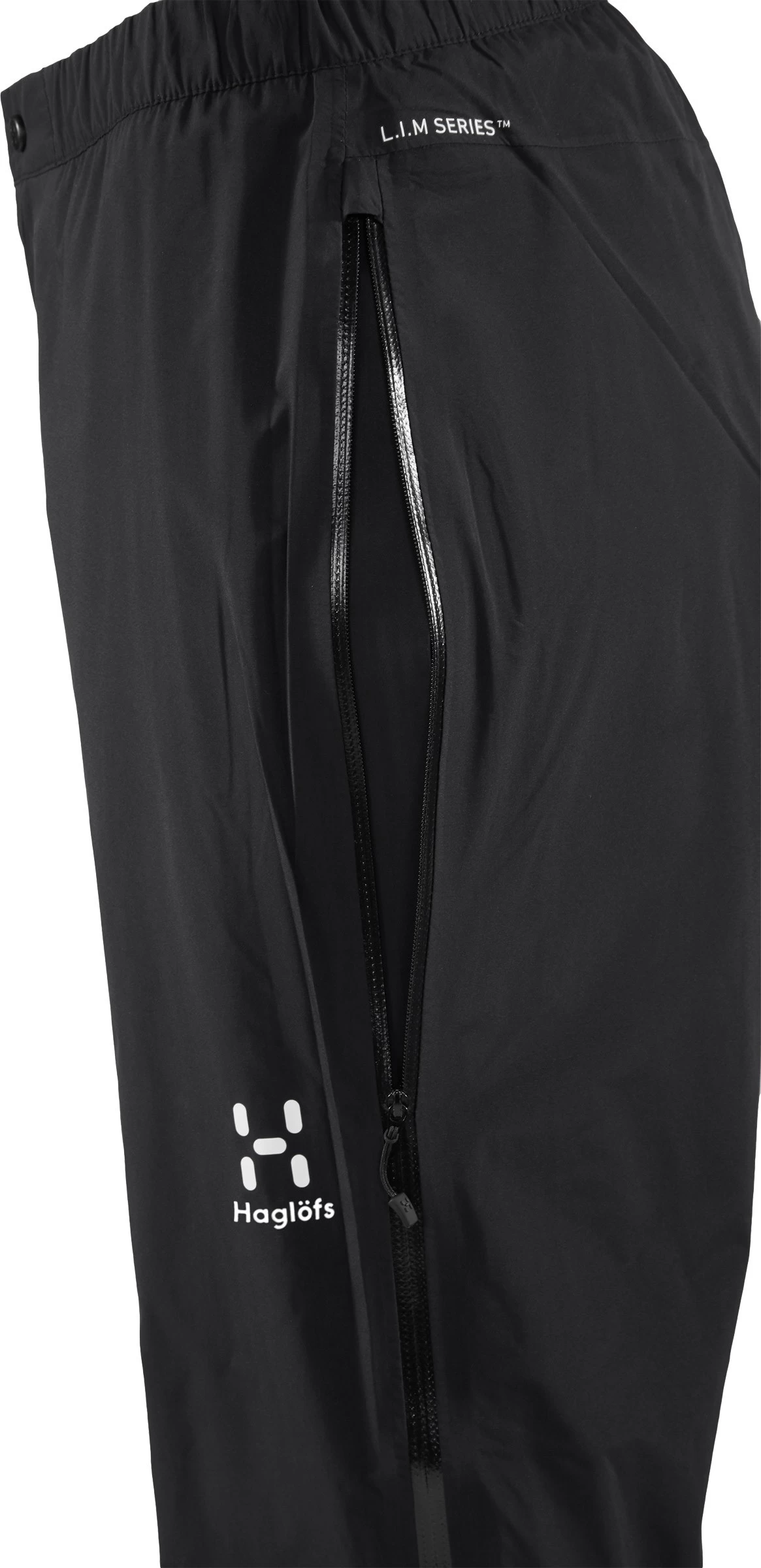 Den Bluesign® -certificerede Haglöfs L.I.M. Pant Women åbnes og lukkes med knaplukning og lynlås og er udstyret med en lang og vandresistent, tovejs lynlås i hver side, der giver mulighed for god ventilation og gør det nemt og hurtigt at få buksen af og på. Lynlåsen går faktisk helt nede fra ankelen og op til lige under hoften.