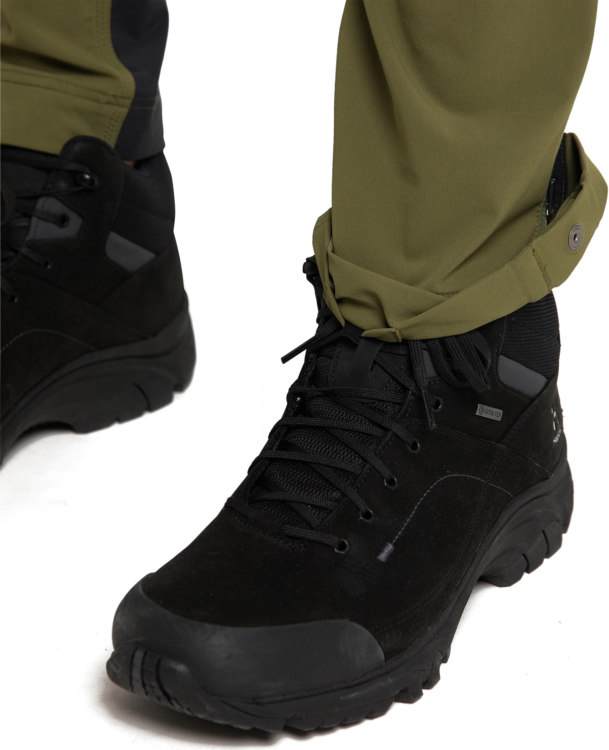 På indersiden af hvert ben er Rugged Slim Pant Women nederst forstærket med en slidstærk vævning, som gør buksen særdeles slidstærk overfor fx store bjergstøvler. Justeringsmuligheden nederst på buksebenene gør det muligt at lukke buksen godt til omkring støvleskaftet.