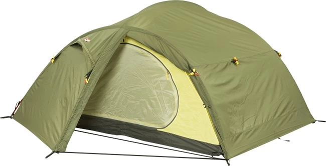 Jo, Helsport kan skam også lave andet, end tunneltelte, og et eksempel herpå er dette alsidige Reinsfjell Pro 2, som er et selvstående og meget let og rummeligt topersoners kuppeltelt, der sammenpakket fylder meget lidt i rygsækken.