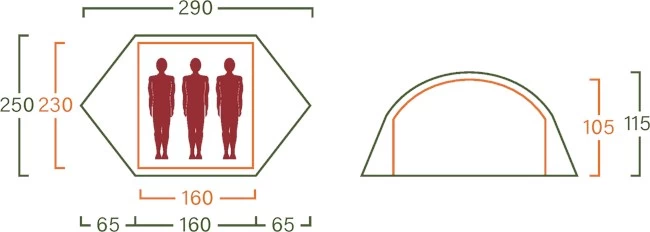 Med både to indgange til det rummelige indertelt og to apsis er det fleksibelt og meget komfortabelt for tre personer på tur. Det er ideelt at bruge den ene apsis til bagage og den anden til madlavning i dårligt vejr, og alternativt kan man vælge at have hver sin separate apsis med egen udgang, så man ikke nødvendigvis skal kravle henover teltmakkeren, når man i løbet af natten skal ud og forrette sin nødtørft. Med de to teltåbninger placeret diagonalt, vil der altid være en åbning i ly for vinden.