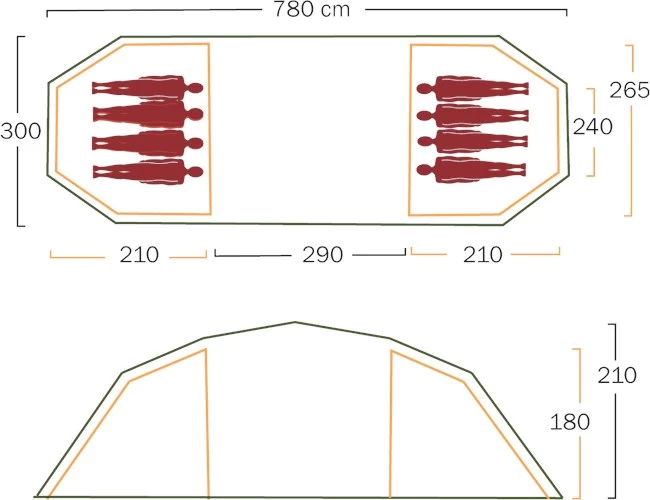 Dette indertelt passer i det store Valhall og huser med en bredde på 265 cm. og en dybde på op til 210 cm. nemt fire personer – i en snæver vending også fem!