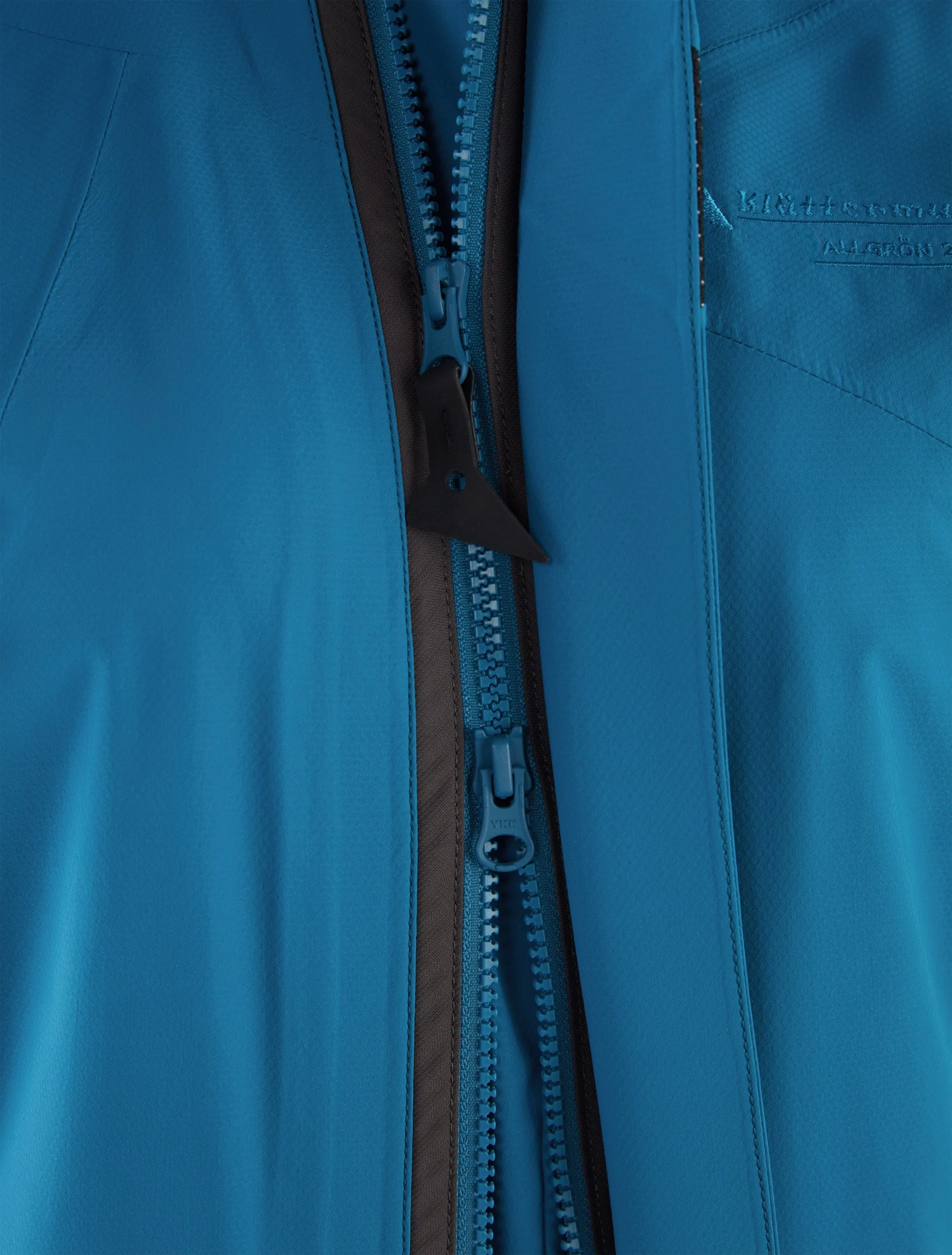 Der er vandtætte stormflapper både for og bag den skrå YKK® Vision -frontlynlås (den forreste stormflap er afstivet), hvilket holder både vind og vand ude. Disse specielle YKK® -lynlåse er meget pålidelige og nemme at betjene – også under krævende vinterbrug! Den skrå lynlåskonstruktion maksimerer de vandtætte egenskaber og sikrer, at lynlåsen ikke kommer i karambolage med hagepartiet. Derudover er den indvendige stormflap øverst foret med blødt velour-fleece, der føles blødt og behageligt mod huden.