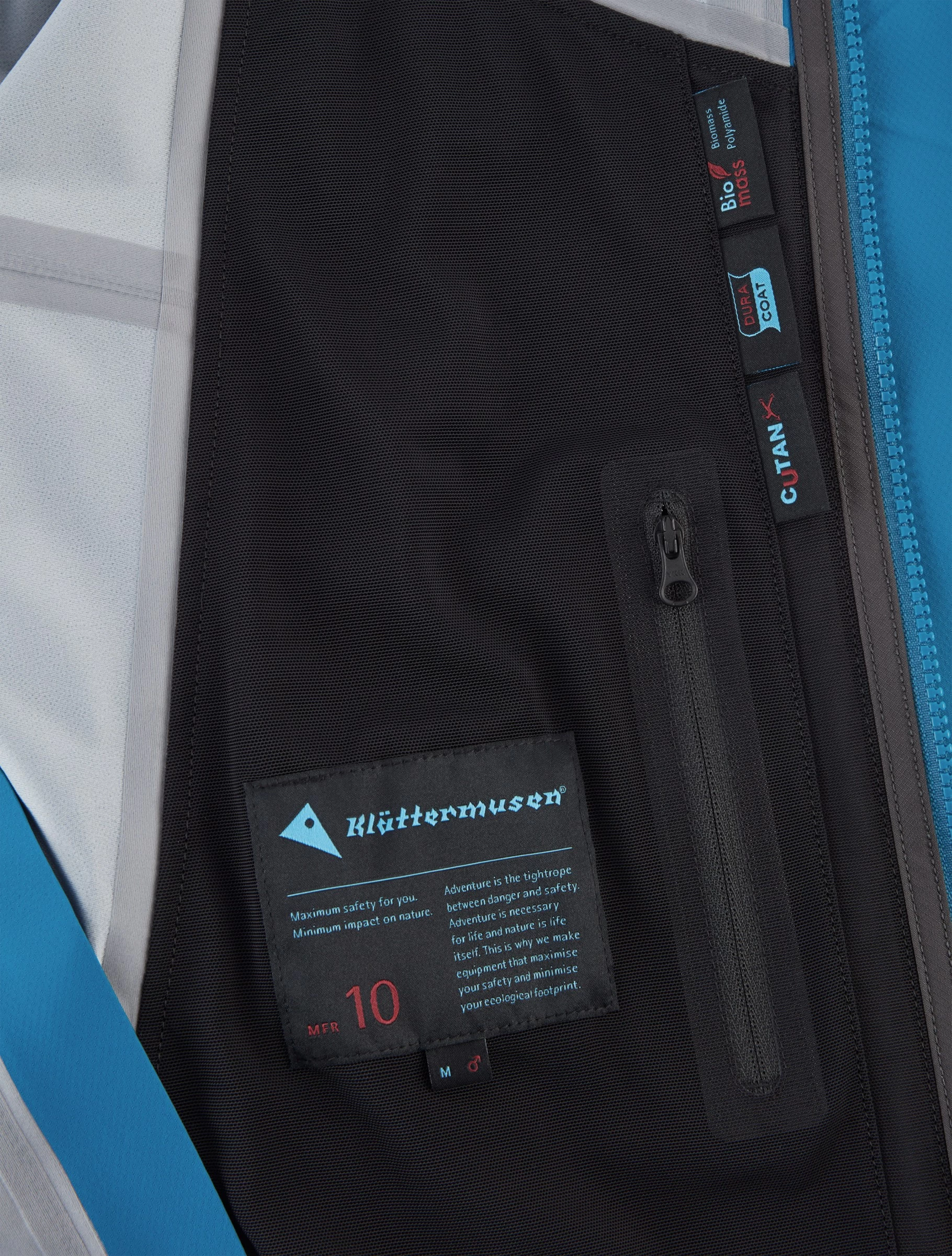 De to frontlommer åbnes med pålidelige YKK® Vision -lynlåse, som er forsynet med såvel indvendig som udvendig stormflap, der effektivt holder regnen ude. Indvendigt er der fundet plads til en lynlåslomme til værdierne. De lange lynlåsåbninger under armene gør det muligt at regulere graden af ventilation ved skiftende aktivitetsniveau, og lommerne på fronten er udstyret med en foring af strækbart net, der sørger for maksimal ventilation, når lommerne åbnes.
