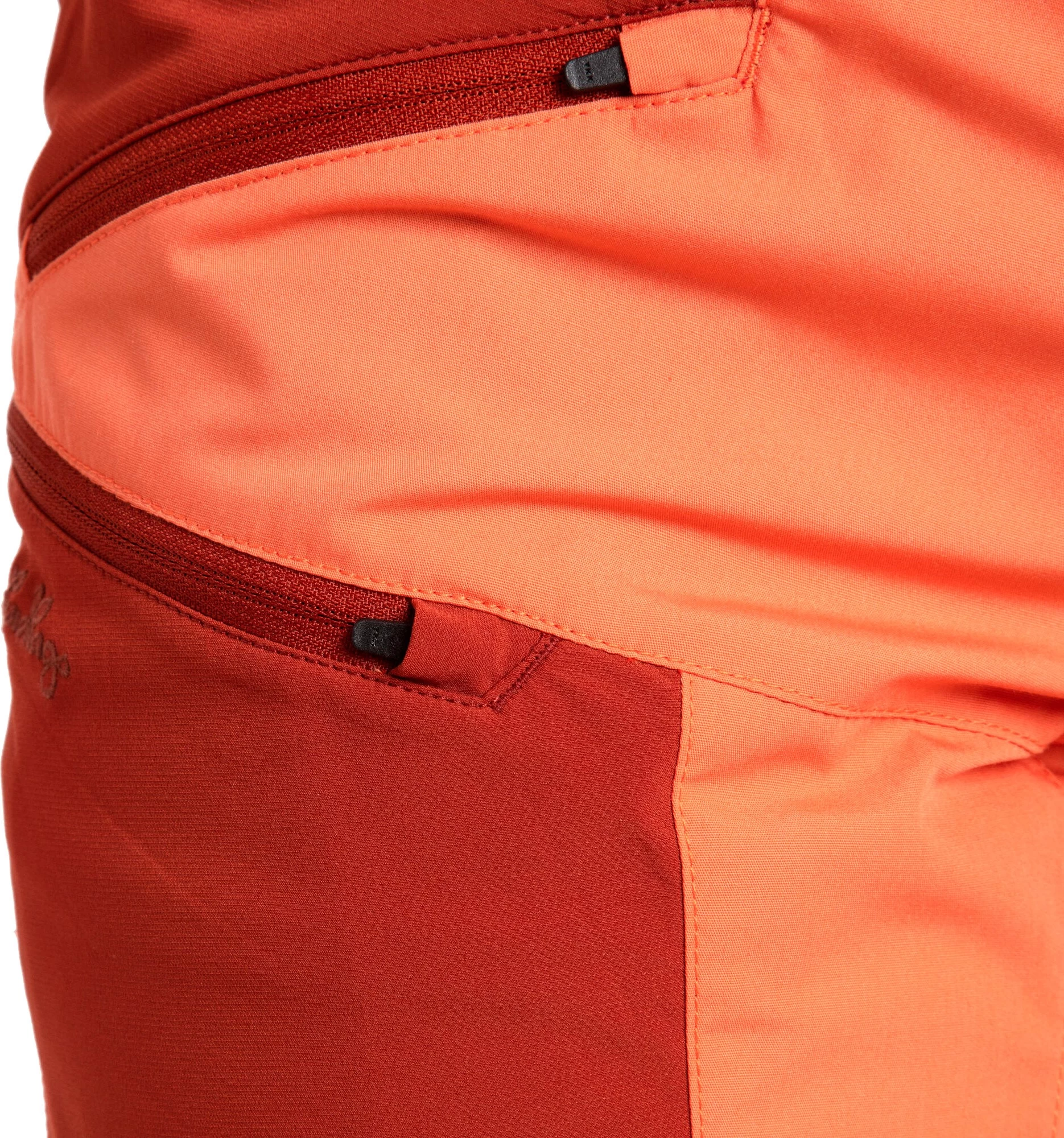 Derudover er Lundhags Makke Lt Shorts Women forsynet med et par praktiske stiklommer med lynlås og en rummelig, lynlåslukket og velplaceret lårlomme på det ene lår til kort, kompas etc. Denne lårlomme er nem at komme til og placeringen gør, at lommens indhold ikke vil genere under vandring. Lårlommen er udstyret med en indvendig stretch-lomme til mobiltelefonen eller andre sager, der ikke skal ligge og skramle rundt med det øvrige indhold. Alle lynlåsene er udstyret med hængere med semi-lock, så de ikke sidder og klaprer.