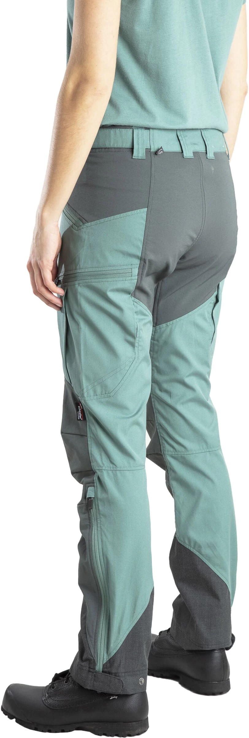 Ganske som Lundhags øvrige trekkingbukser, er disse Makke Pants Women primært fremstillet i Lundhags’ eget vindresistente og meget åndbare, DWR-imprægnerede LPC® Eco, som er Lundhags egen bomuld/polyester-vævning, der består af 65% genindvundet polyester og 35% organisk bomuld – altså en direkte udfordrer til Fjällrävens G-1000®!