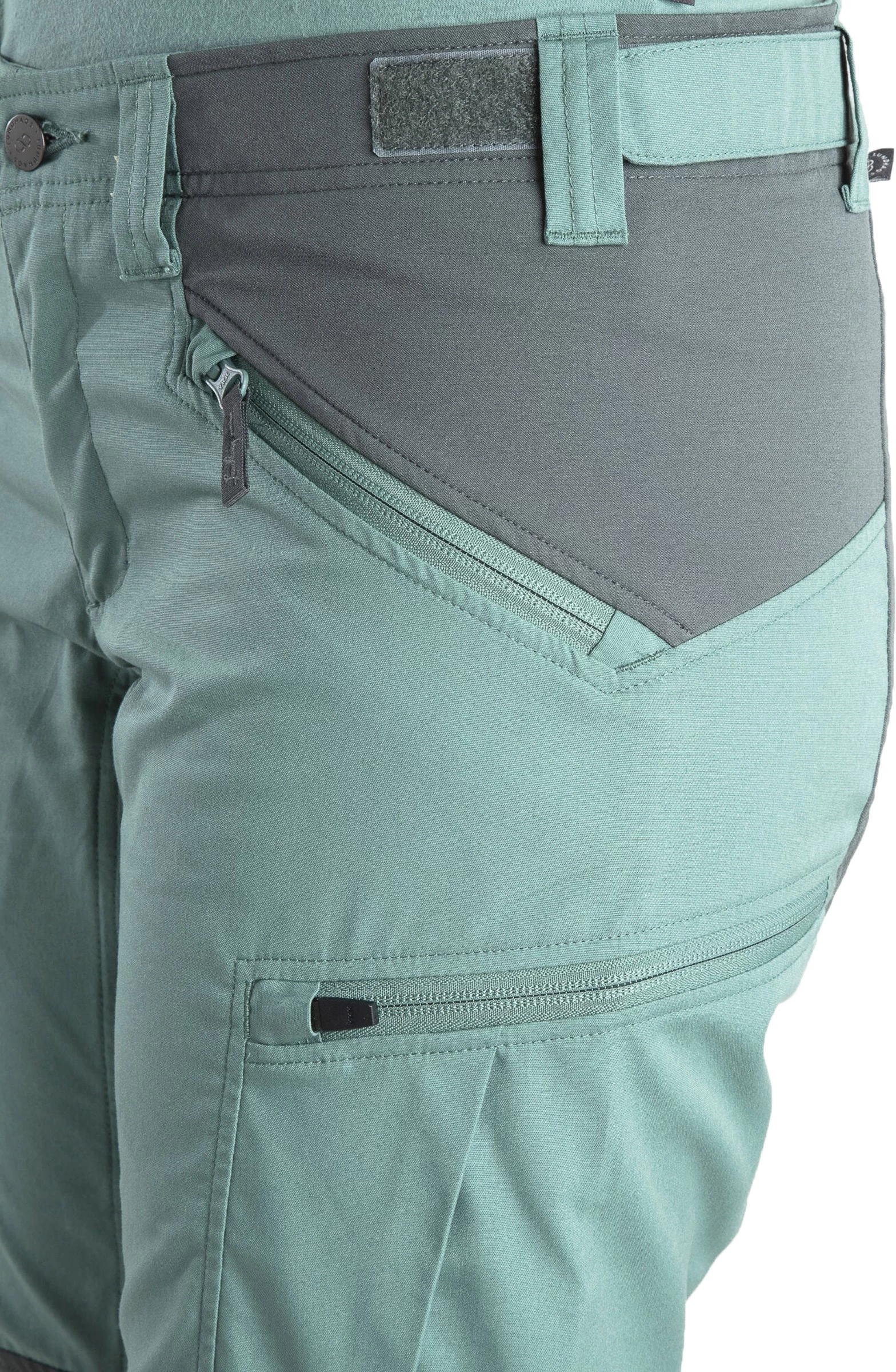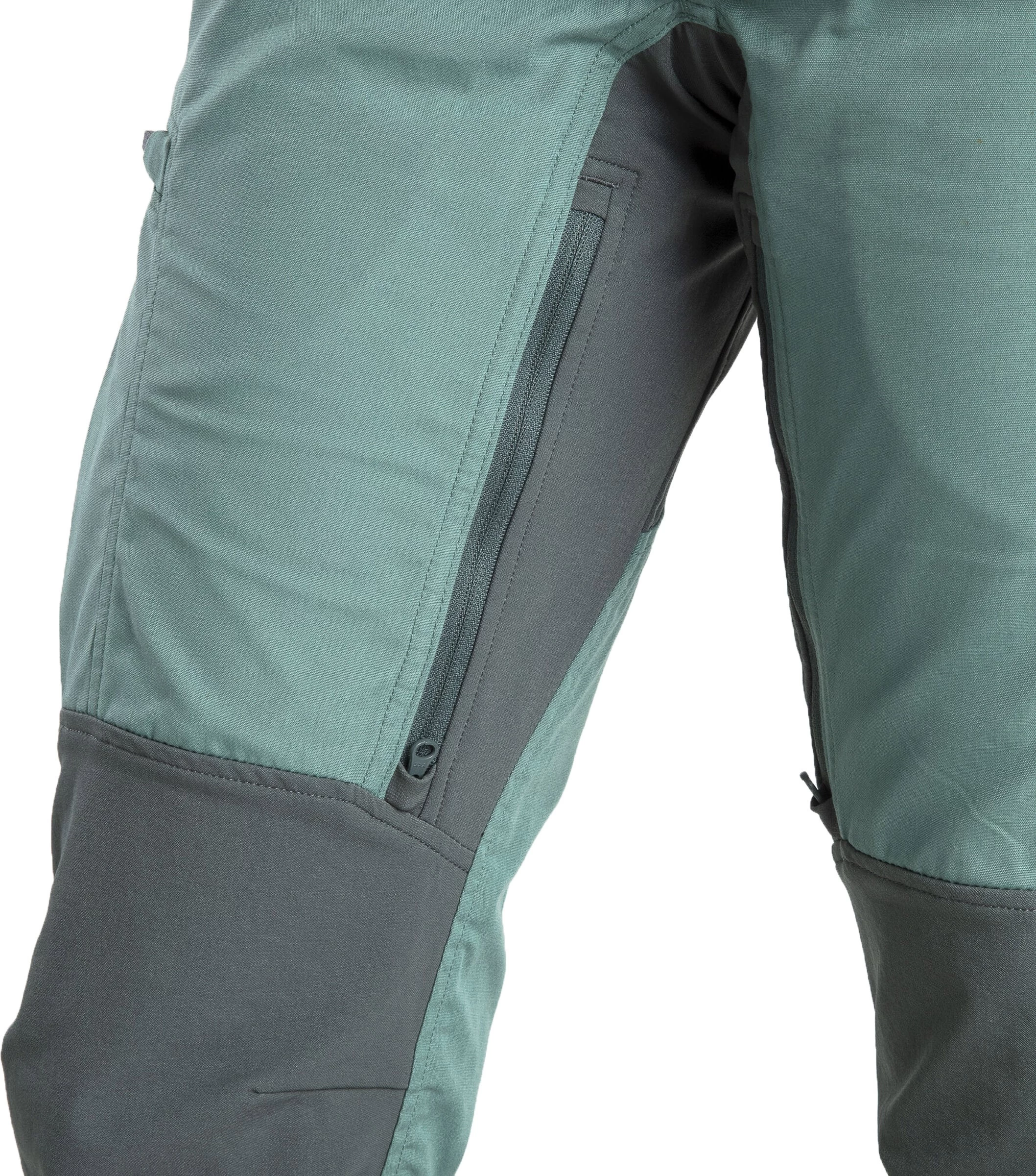 Bevægelsesfriheden er ganske enestående i et par Makke Pants Women, hvilket dels skyldes den sublime skæring, men også dels det faktum, at området omkring skridtet, de formskårede knæ, bagdelen og panelerne ved hofterne er fremstillet af et strækbart, meget vejrresistent og slidstærkt Schoeller® Dry Skin – og det kan mærkes!