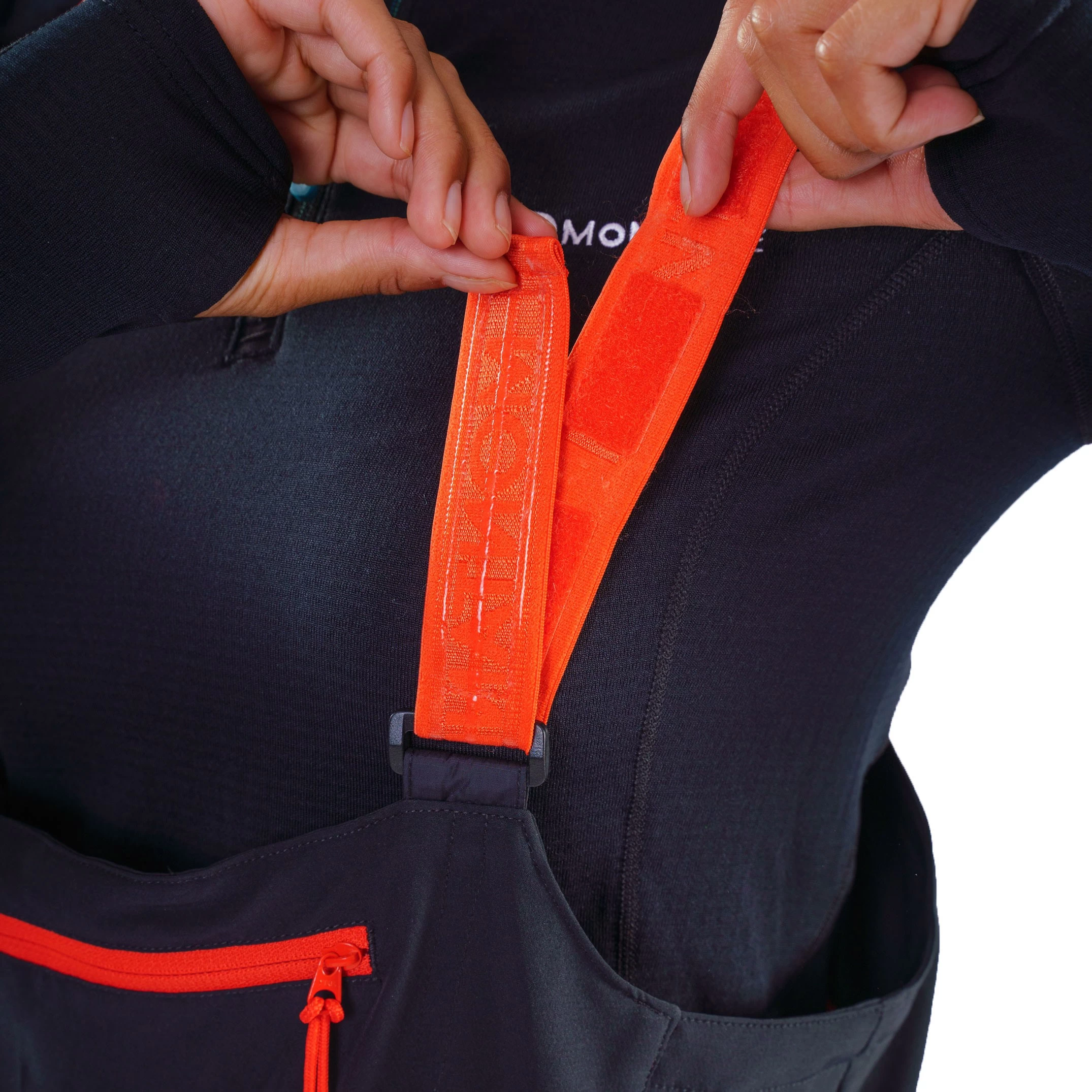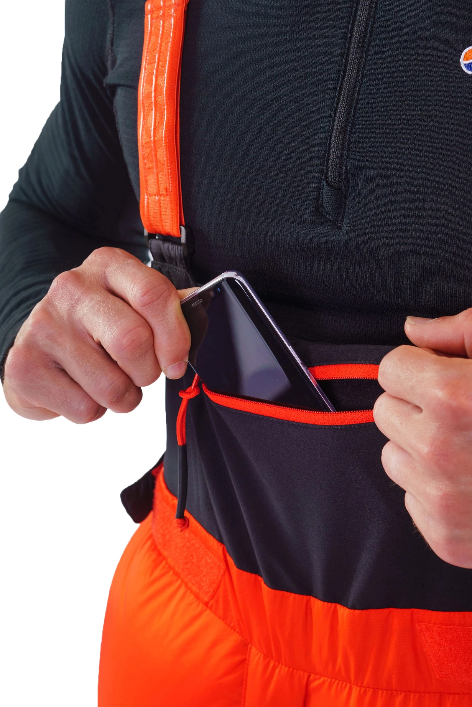 Det øverste stykke af salopetterne er fremstillet af Chameleon³ Fabric, der er en meget strækbar polyestervævning med meget fine svedtransporterende egenskaber, som tørrer lynhurtigt og som altså er firevejs strækbar, så uanset, hvordan du bevæger dig, vil overdelen følge dine bevægelser uden at virke hæmmende. En praktisk lynlåslomme på brystet levner plads til de medbragte småting og med mulighed for fastgørelse af diverse effekter i den indbyggede karabinløkke.