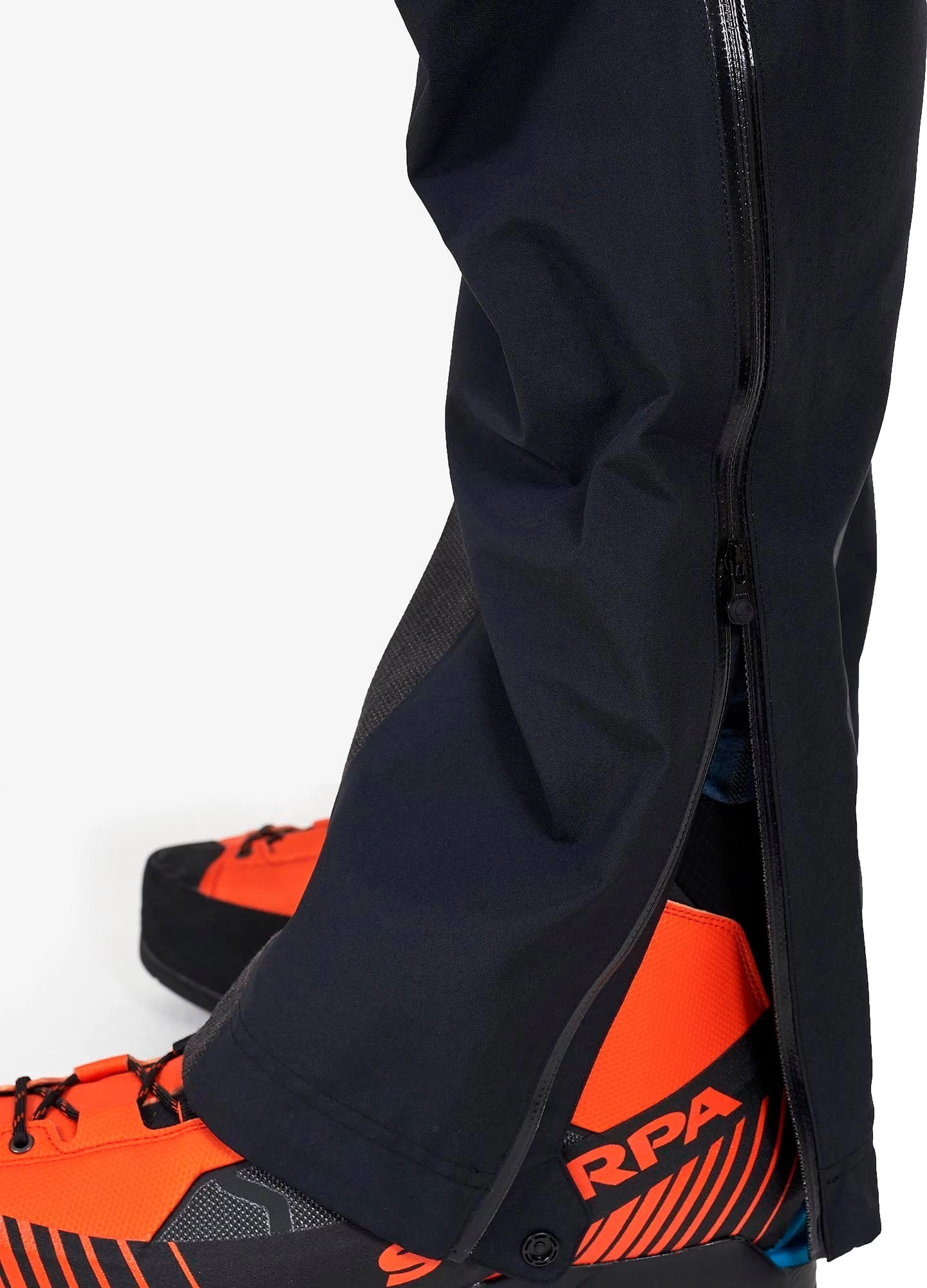 Pac Plus XT Pants er i hver side forsynet med en 3/4-lang og tovejs lynlås, som gør det nemt og hurtigt at få bukserne af og på. Denne lynlås muliggør desuden ventilation omkring benene, når der er behov for det, og omkring anklen justeres vidden med gedigne knaplukninger, så buksen kan lukkes godt til omkring støvlerne, uden at den kolde vind trænger ind. Den elastiske linning justeres ved hjælp af en enhåndsbetjent og elastisk snorelukning.