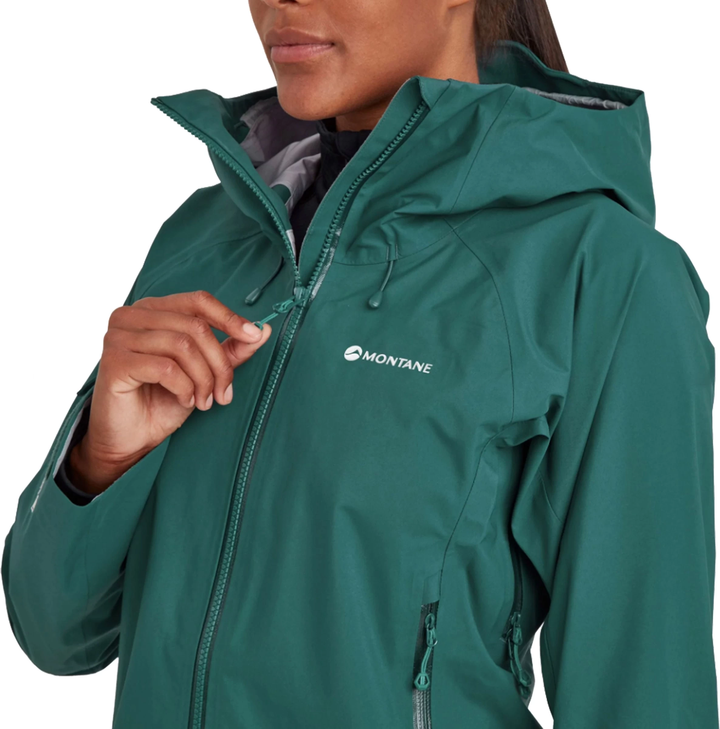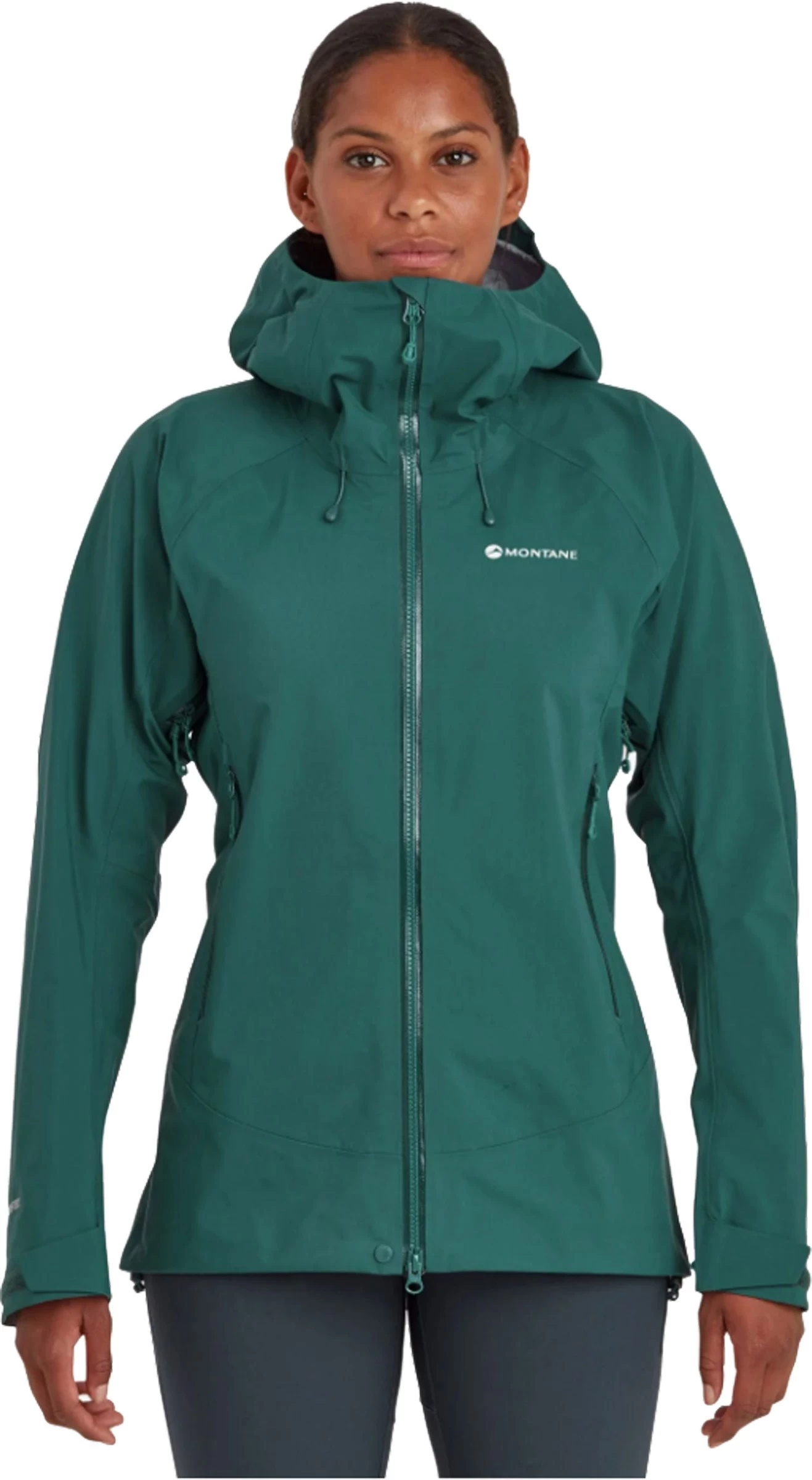 Den hoftelange Montane Phase XT Waterproof Jacket Women er fremstillet af en meget robust 70 denier Gore-Tex® Performance®, som er kendetegnet ved en smidig, glat og ekstremt tætvævet og bomstærk overflade, der i sig selv er meget vandafvisende, så jakkens åndbare egenskaber og rivstyrke maksimeres. På indersiden af tekstilerne er selve Gore-Tex® -membranen belagt med en tynd ripstop-tricot, der beskytter membranen og nedsætter friktionen mellem jakken og det underliggende, isolerende lag.