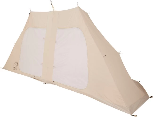 Inderteltet entreres gennem de ekstra store lynlåslukkede døre, som er med foranliggende myggenet, så man på de varme nætter kan nøjes med blot at lukke myggenettet. Det flade loft er ligeledes af luftigt mesh, så dels en ordentlig ventilation opretholdes og som dels gør det muligt – når vejret tillader det – at ligge og kigge på stjernehimlen, når tophatten på yderteltet er skubbet til side.