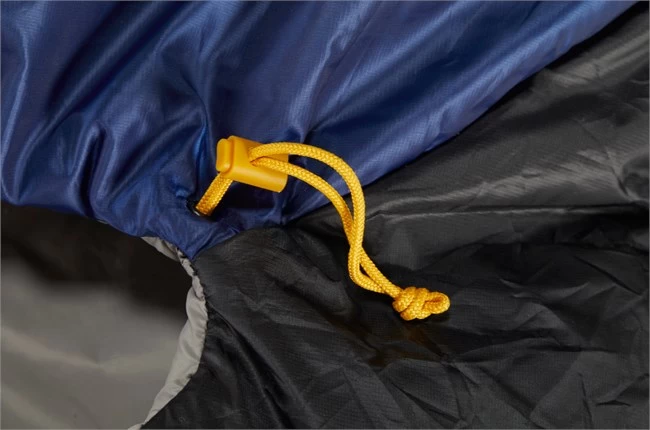 Den velformede hætte er nøje udformet, så den passer som den skal, og den enhåndsjusterbare snorelukning sørger for en ordentlig sammensnøring, så hætten faktisk følger hovedets bevægelser. Hættens åbning er naturligvis skåret så tilpas lille, at unødigt varmetab undgås. Den fiberfyldte kanal langs hele åbningens kant holder varmen nede i soveposen og forsegler mod den kolde vind.