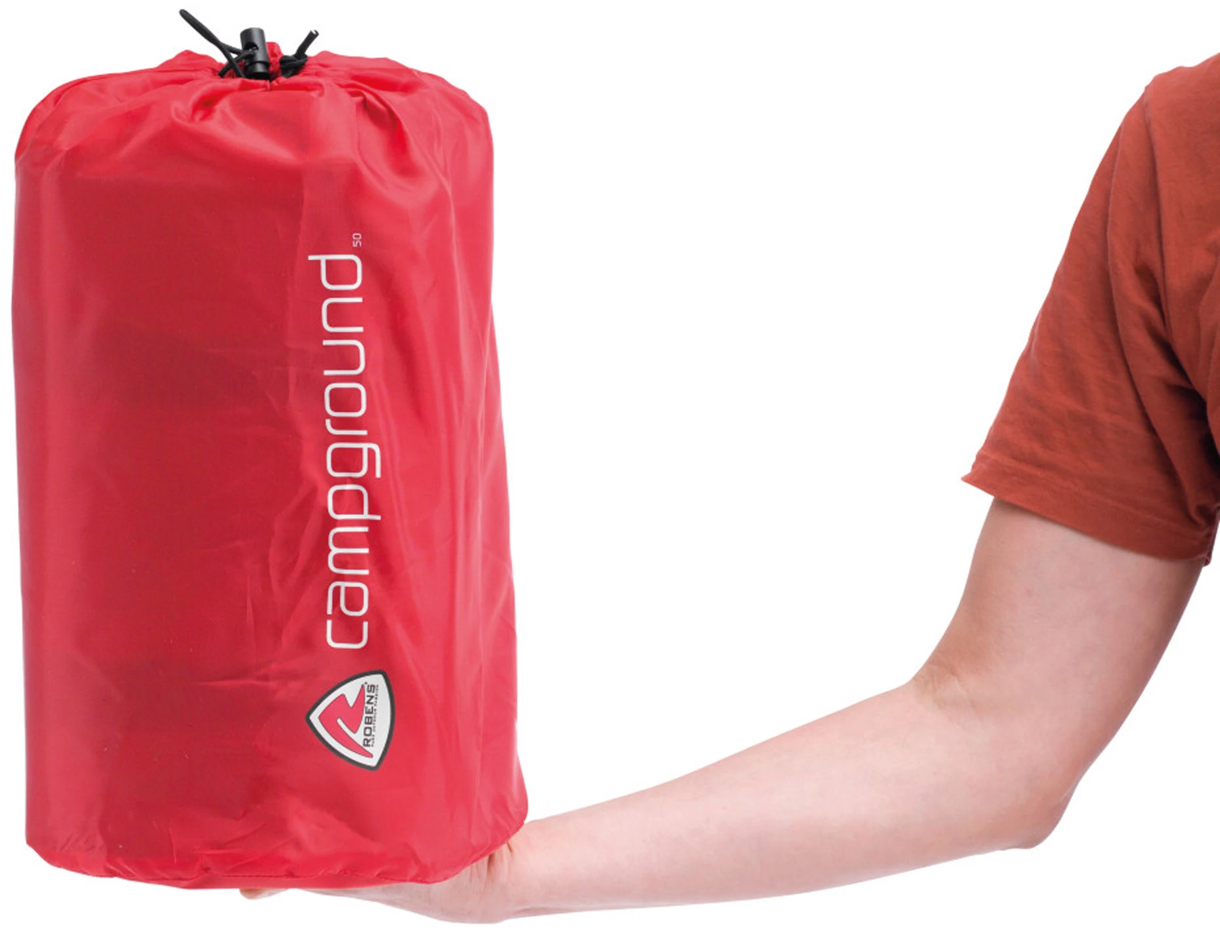 Dette ekstra lange, brede og meget komfortable Campground 50 har en tykkelse på 5 cm. og måler 63 cm. i bredden og hele 195 cm. i længden. Når det pakkes sammen, foldes det på langs på midten, hvormed pakkevolumen i den medfølgende pakkepose holdes nede på 32 x 20 cm.