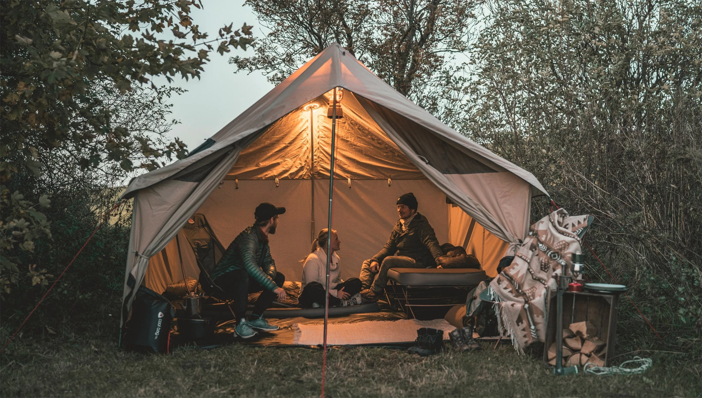 Det stilfulde retro-look kombineres med praktiske funktionaliteter som fx skorstensåbning og en lynlås i den fastsyede teltbund, så man sikkert og forsvarligt kan placere en teltovn, hvis det skulle blive aktuelt. Som ekstraudstyr kan der tilkøbes et fempersoners indertelt, som både giver privatliv og øger beskyttelsen mod vind og vejr.