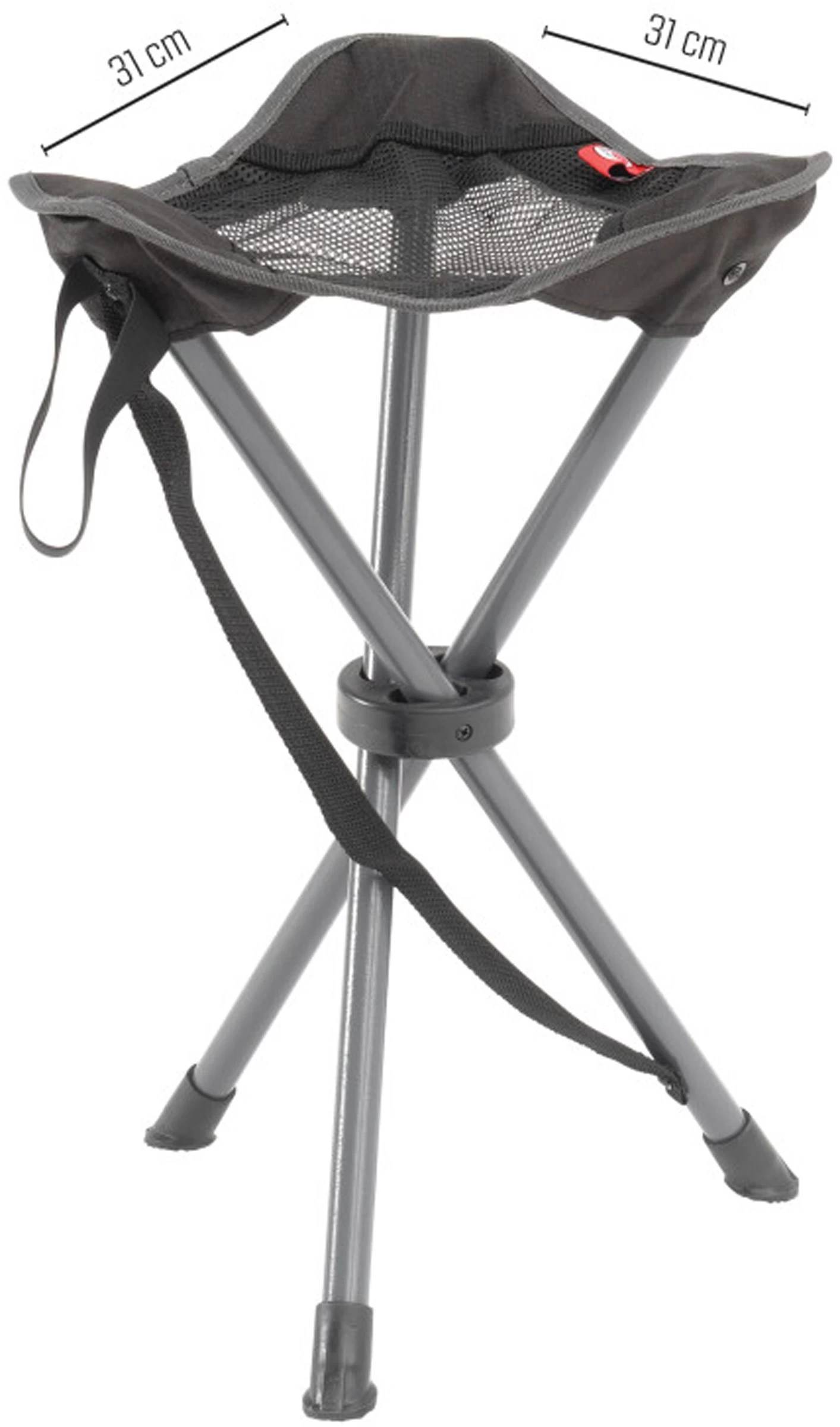 Denne gedigne trebensstol, som selvfølgelig kan foldes sammen, så den fylder mindst muligt under transport, er fremstillet med sæde af slidstærkt 600 Denier Oxford Polyester, hvor belastningspunkterne er ekstra forstærket med Hypalon®, som er et uopslideligt kunststofmateriale. De tre ben er af lakeret stål, der ligesom de øvrige kompaktstole er testet til at kunne tåle belastning op til 120 kg.