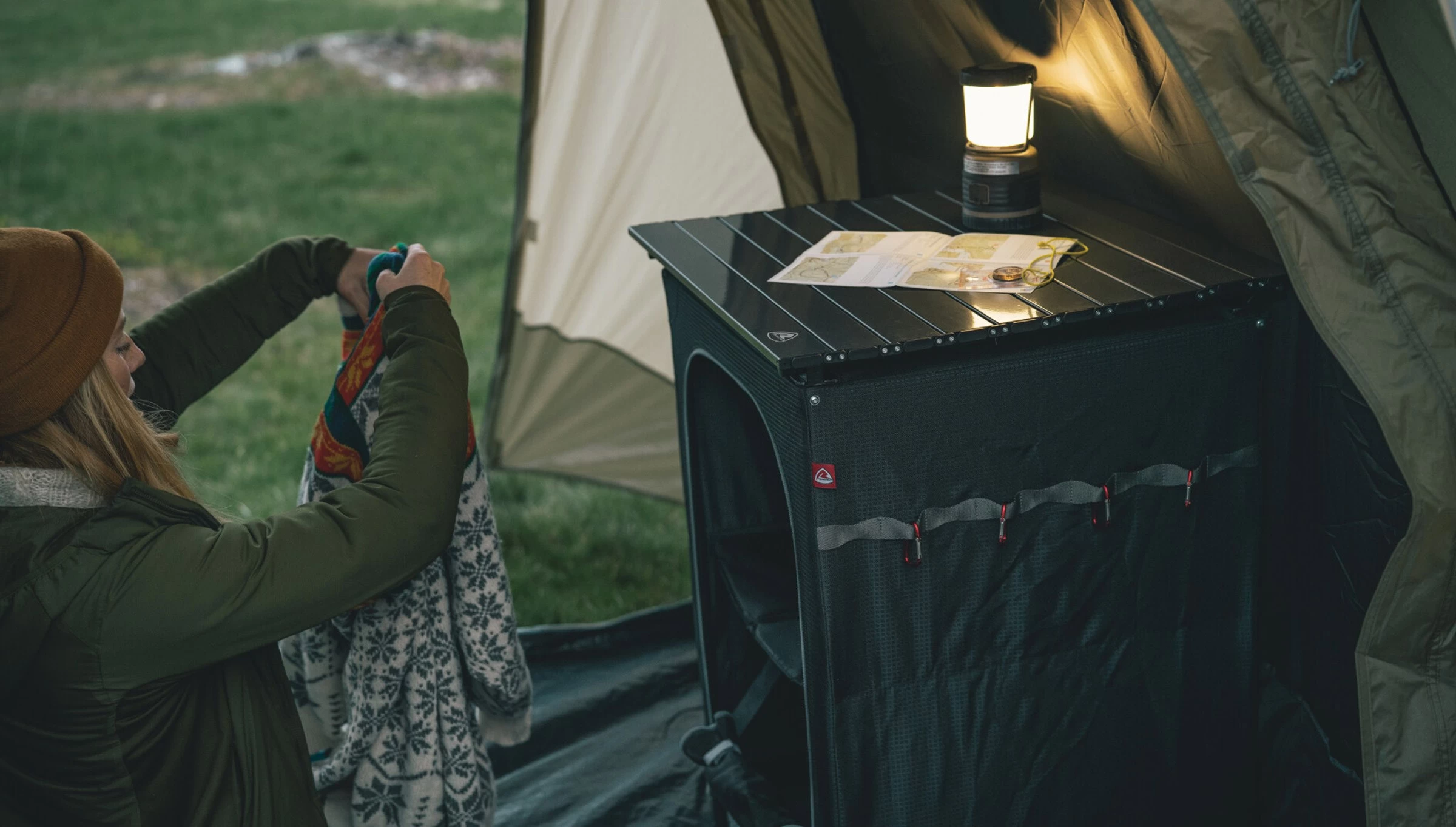 Dette særdeles praktiske Settler Storage Unit er et meget alsidigt og praktisk opbevaringsmøbel, som er perfekt til opbevaring og organisering af tøj og grej, ligesom det er fantastisk at bruge som køkkenbord under madlavningen, hvor det i de flere lommer og flytbare hylder levner god plads til både skærebræt, gryder, pander og al den nødvendige køkkenservice, som praktisk kan hænges på siden i karabinhagerne.