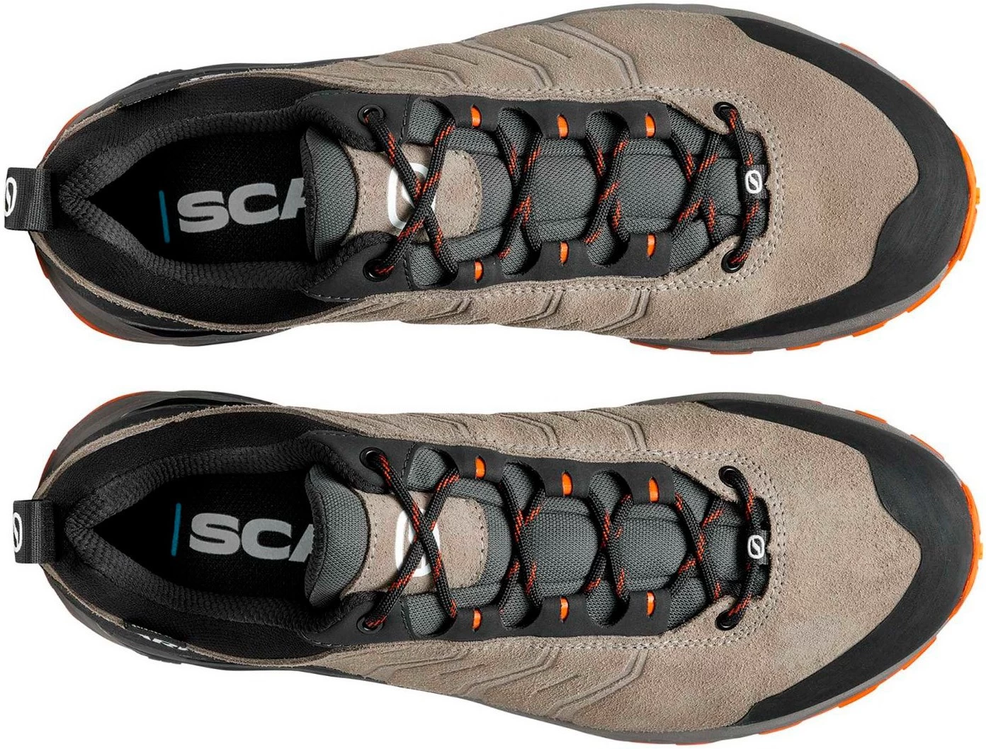 Overdelen på Scarpa Rush Trail GTX er fremstillet af 1,8 mm nubuck og paneler i pløsen af slidstærkt og smidigt Cordura® -nylon omkring snøresystemet. På udsatte steder som snude, over tæerne og omkring hælpartiet, er Rush Trail GTX forstærket med paneler af slidstærkt gummi.