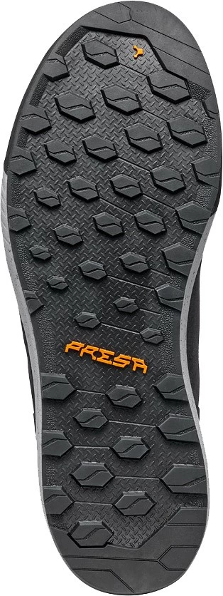 Den slidstærke og tilpas sticky PRESA® -ydersål er af en SuperGum™ Eco Rubber -blanding, som altså ligeledes er delvist fremstillet af genanvendt gummi. Og selv snørehullerne er af genindvundet aluminium, så her er altså tale om en både super komfortabel og meget miljøvenlig sko!