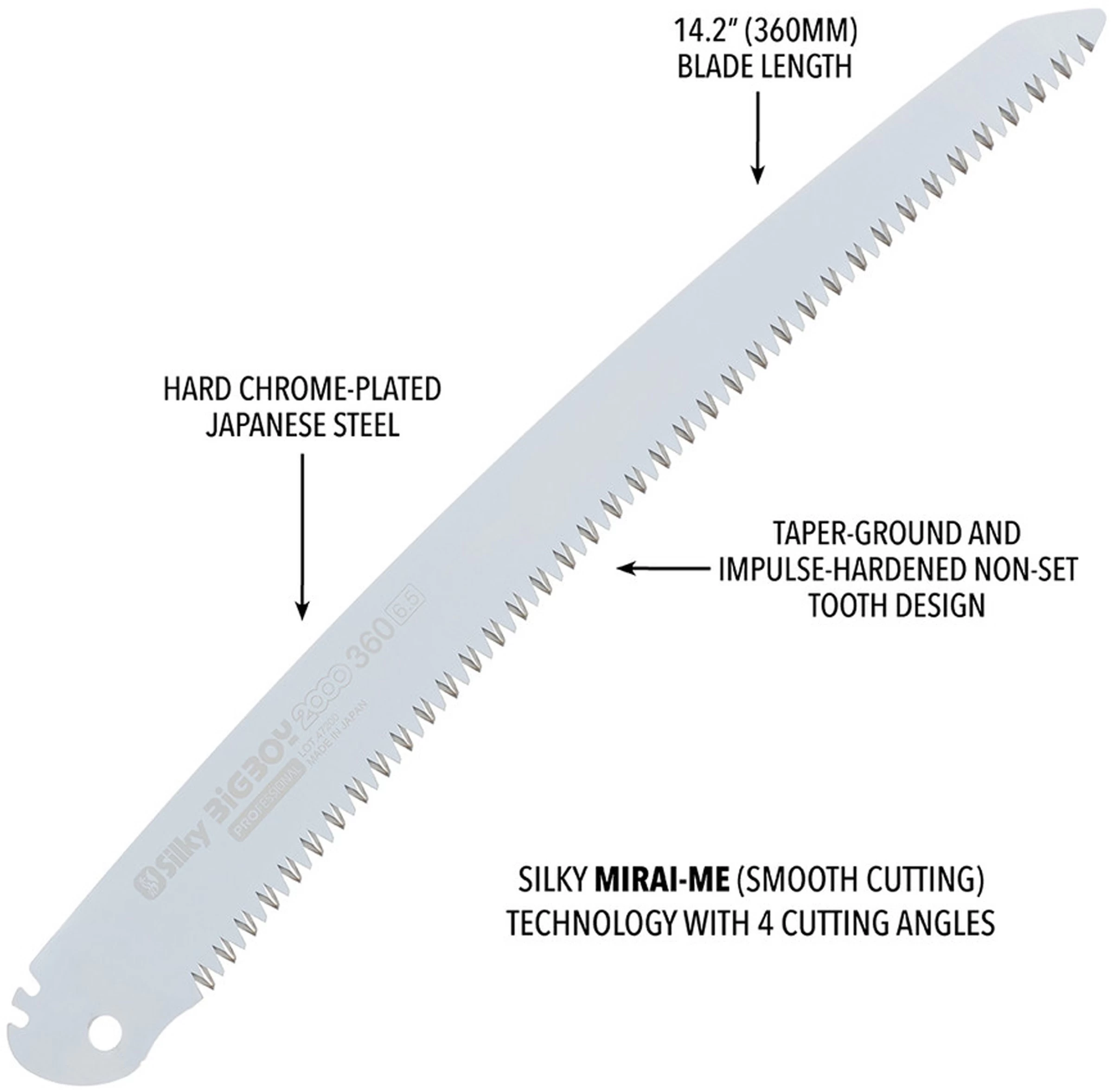 Silkys patenterede MIRAI-ME -teknologi resulterer i knivskarpe og præcisionsskårede tænder på klingen, hver med hele fire skærekanter og en ekstremt glat overflade som resultat. De fire skærende kanter giver et helt ekstraordinært rent snit i træet, og det uanset, om du saver diagonalt med, på tværs eller langs med træets fibre. Du saver i trækretningen og savsmuldet fjernes, når du skubber saven. For en optimal udtømning af savstøv på klingen, er en del af tænderne blevet slebet udefra, og denne uovertrufne teknologi gør det muligt at bruge saven til flere former for savning. Spidsen af tænderne på klingen er induktionshærdede, hvilket holder dem skarpe i væsentligt længere tid, end traditionelle savtænder.
