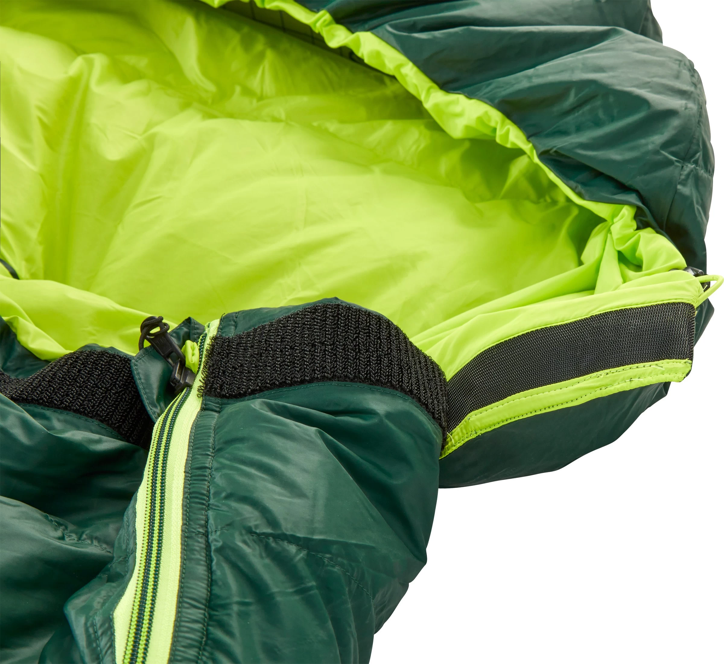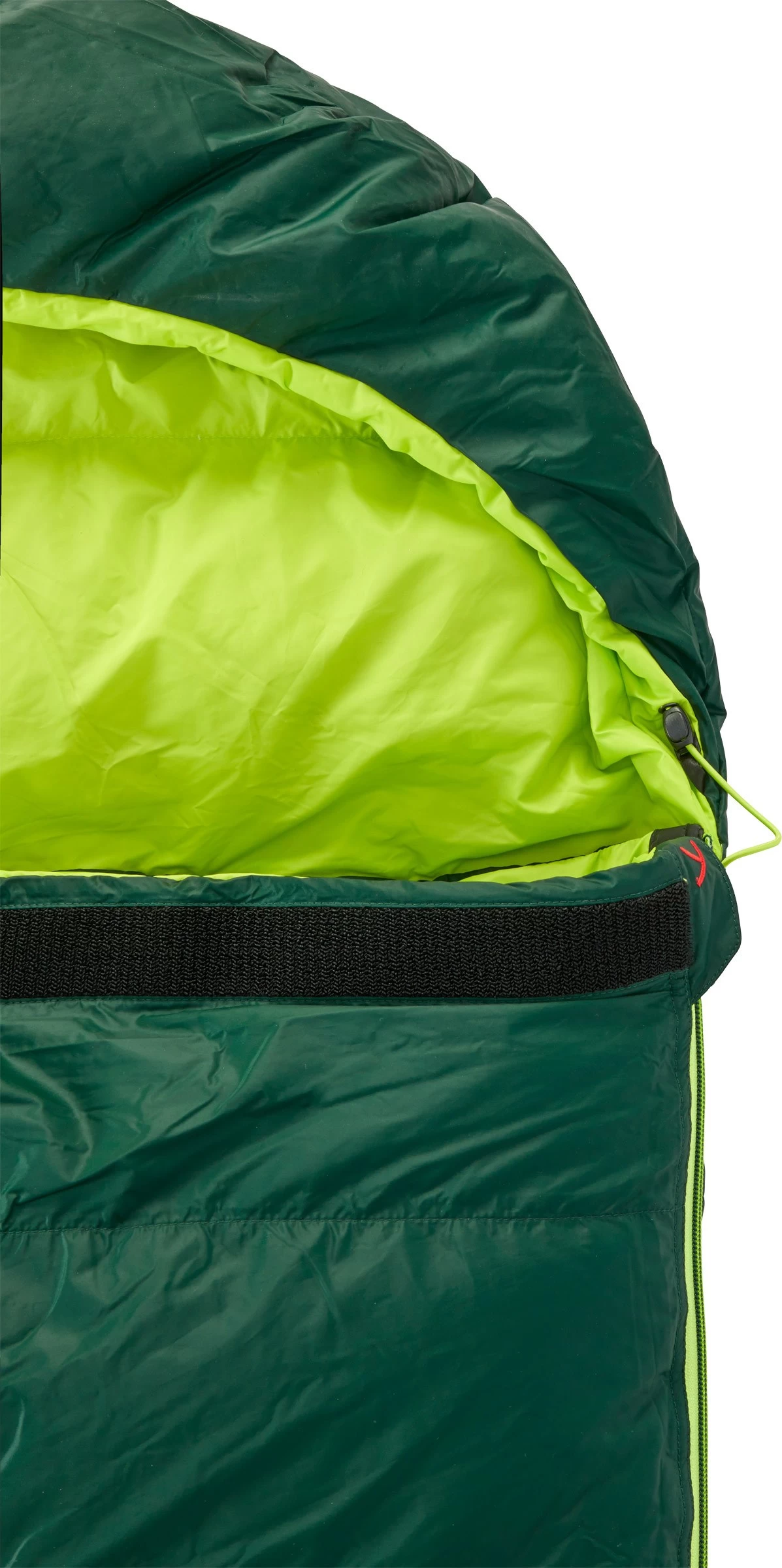 Y by Nordisk Tension Brick 400 Large er selvfølgelig udstyret med dunfyldt stormflap bag den lange lynlås (som er tovejs for at kunne ventilere nedefra) for at minimere varmetabet. Endvidere er posen forsynet med regulerbar hætte, som kan fastgøres på begge sider af posen, afhængigt af, om man vil have lynlåsen i højre eller i venstre side. Indvendig findes en fiks lomme til fx vækkeur eller værdierne. Og så leveres Tension Brick 400 Large både med pakkepose og med en stor opbevaringspose, hvori soveposen kan ligge tilpas luftigt mellem turene i det fri – det har den nemlig bedst af!